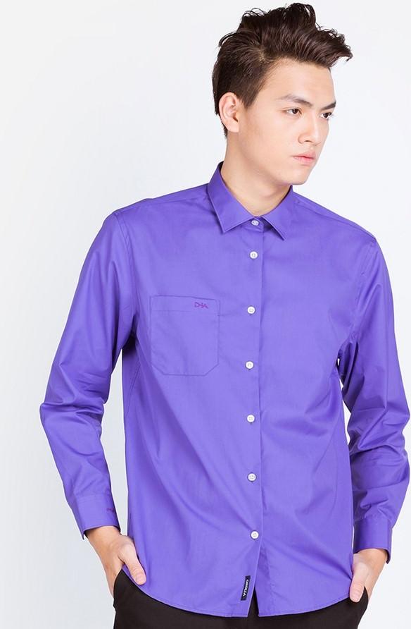 ✨Áo sơ mi nam dài tay ALIGRO cổ bẻ dáng ôm body 100% chất cotton màu tím ALGS090