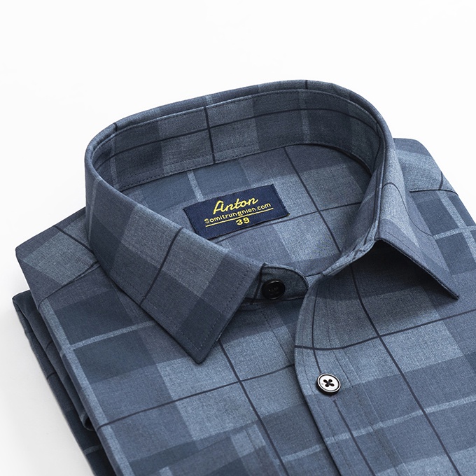 Áo sơ mi nam trung niên, Áo sơ mi nam công sở Anton, Áo sơ mi dài tay họa tiết caro