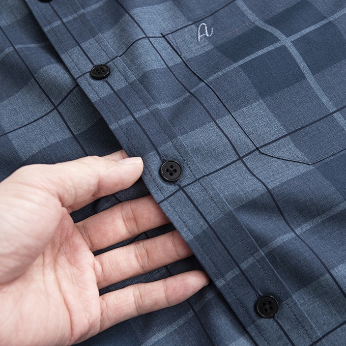 (V) MÔ TẢ: Form Taylor, tai dài Form áo tiêu chuẩn với form áo rộng vừa phải, không ôm sát cơ thể, bó nhẹ ở vùng eo và tay áo. Độ rộng vùng ngực và nách cũng sẽ fit hơn với cơ thể. Không quá rộng như form áo cổ điển. Màu vải nhã nhặn và trung tính dễ dàng phối trang phục tạo sự lịch lãm, nam tính Nút ton-sur-ton khắc logo đẹp mắt phối trọn vẹn màu áo. Logo thêu sắc nét trên túi áo. Chất liệu:50%POLYESTER- 24%COTTON-2%SPANDEX- 24%VISCOSE(BAMBOO) |Mềm mịn|Thấm hút |Kháng khuẩn|Độ thoáng khí cao|Chống tia UV|Chống nhăn|Chống co rút |Nhanh khô|Dễ vệ sinh làm sạch|Đứng phom áo Màu sắc : Màu Xanh họa tiết