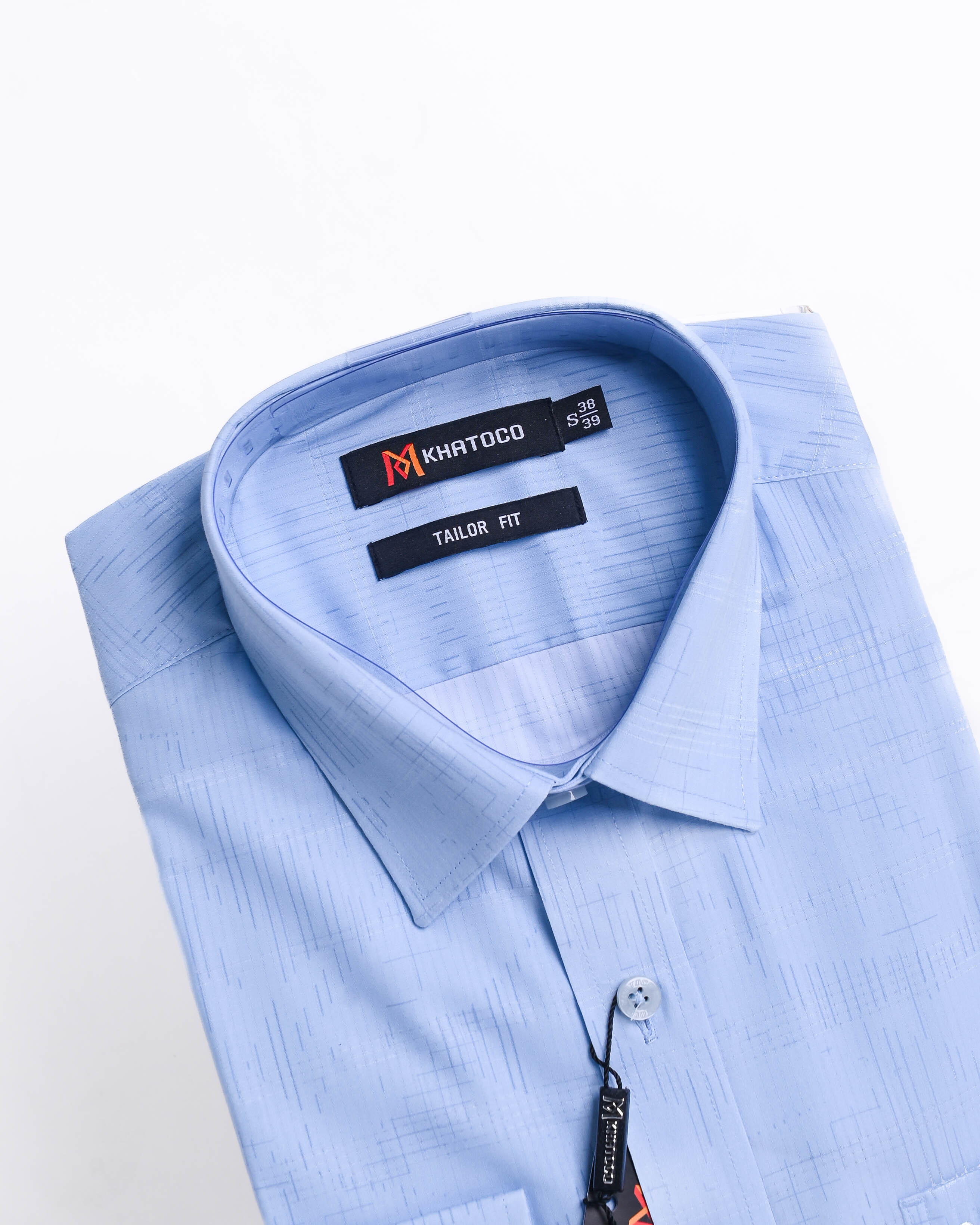 Mua tại Tiktok(V) Mô tả sản phẩm: Áo sơ mi nam tay dài Khatoco - Kiểu dáng Tailor Fit Mang đến phong cách thanh lịch và hiện đại, áo sơ mi nam Khatoco được thiết kế form Tailor Fit ôm vừa vặn, tôn dáng, phù hợp cho cả môi trường công sở và các dịp trang trọng.