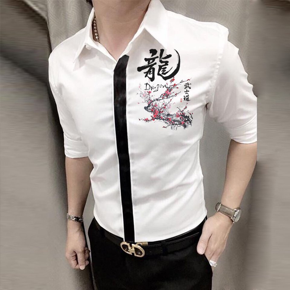 Thiết kế Áo sơ mi nam tay dài viền vai họa tiết cây hoa anh đào cao cấp phong cách đường may tỉ mỉ. Áo thiết kế form vừa vặn giúp tôn được đường nét