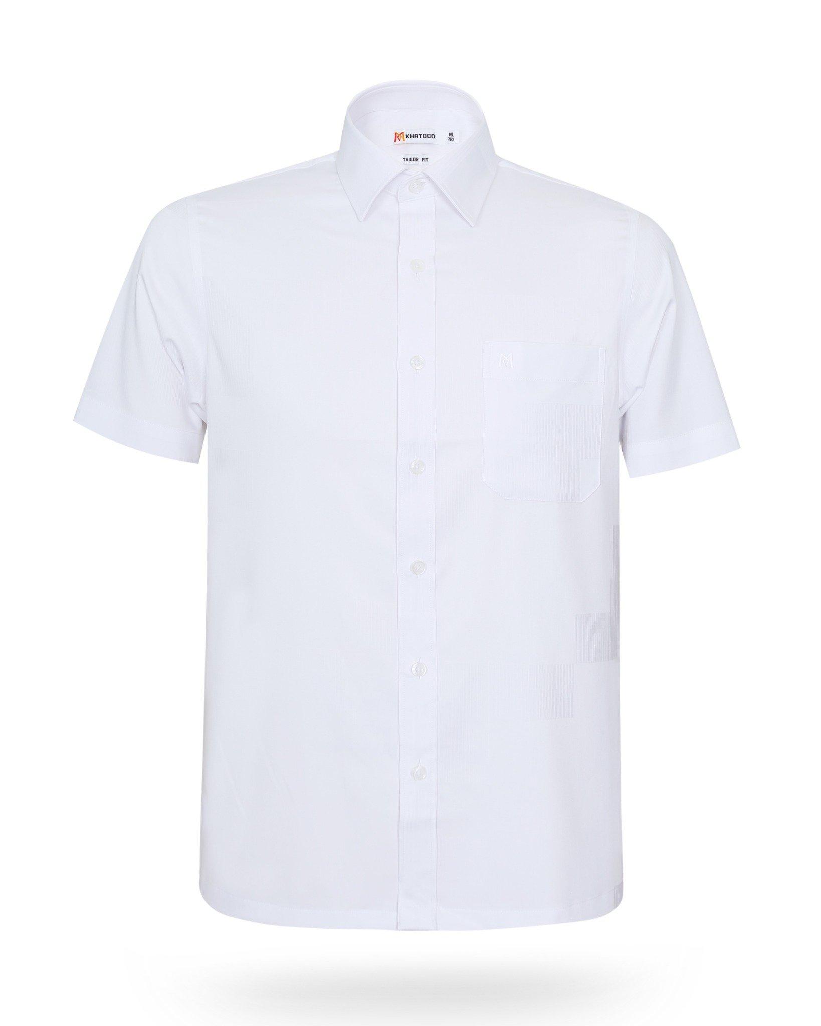 Áo sơ mi nam tay ngắn lai ngang – Khatoco - Mã hàng: A1MN538T2 - Chất liệu: 75% Polyester + 22% Viscose (Bamboo) + 3% Spandex → Vải mềm mại, thoáng mát, co giãn nhẹ,