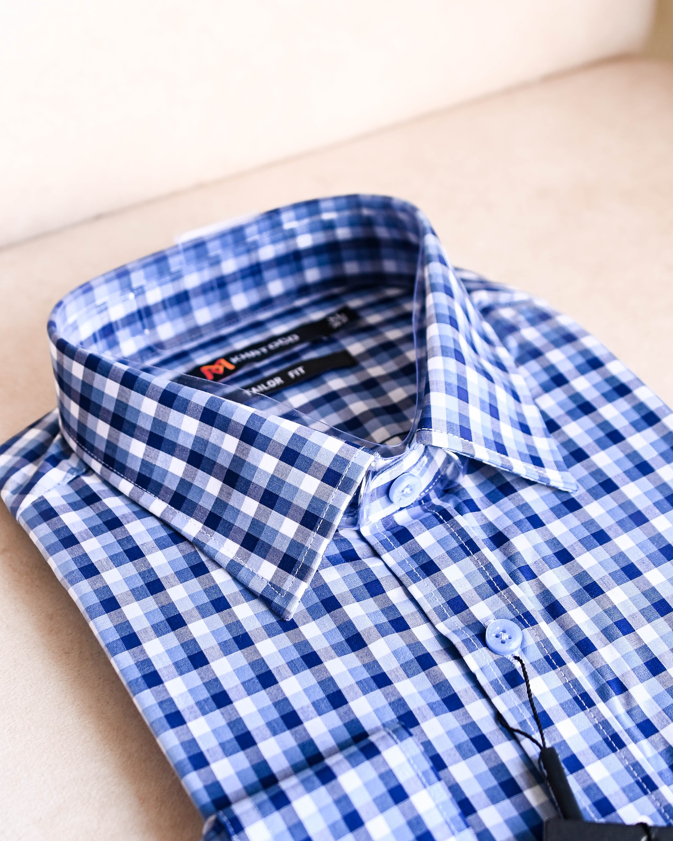 Áo sơ mi nam trung niên, Áo sơ mi nam công sở Anton, Áo sơ mi nam dài tay họa tiết caro xanh Vải cotton thoáng mát, thấm hút tốt, mềm mịn không xù Qúy