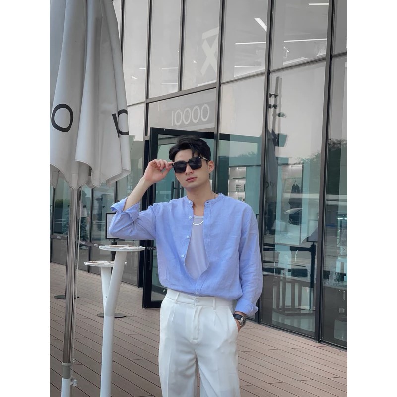 ✨Áo sơ mi nam phong cách Hàn Quốc dài tay thiết kế cổ trụ tinh tế, thanh lịch MS04
