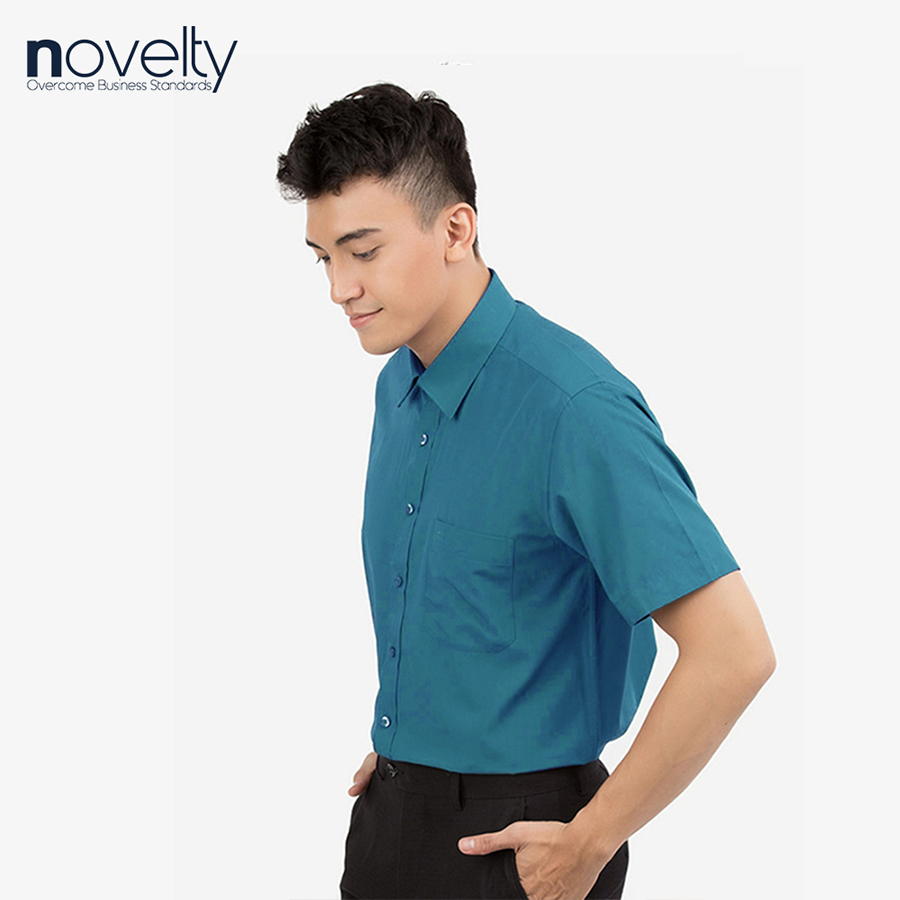 ✨Áo sơ mi nam Slim fit ngắn tay xanh cổ vịt 171424N