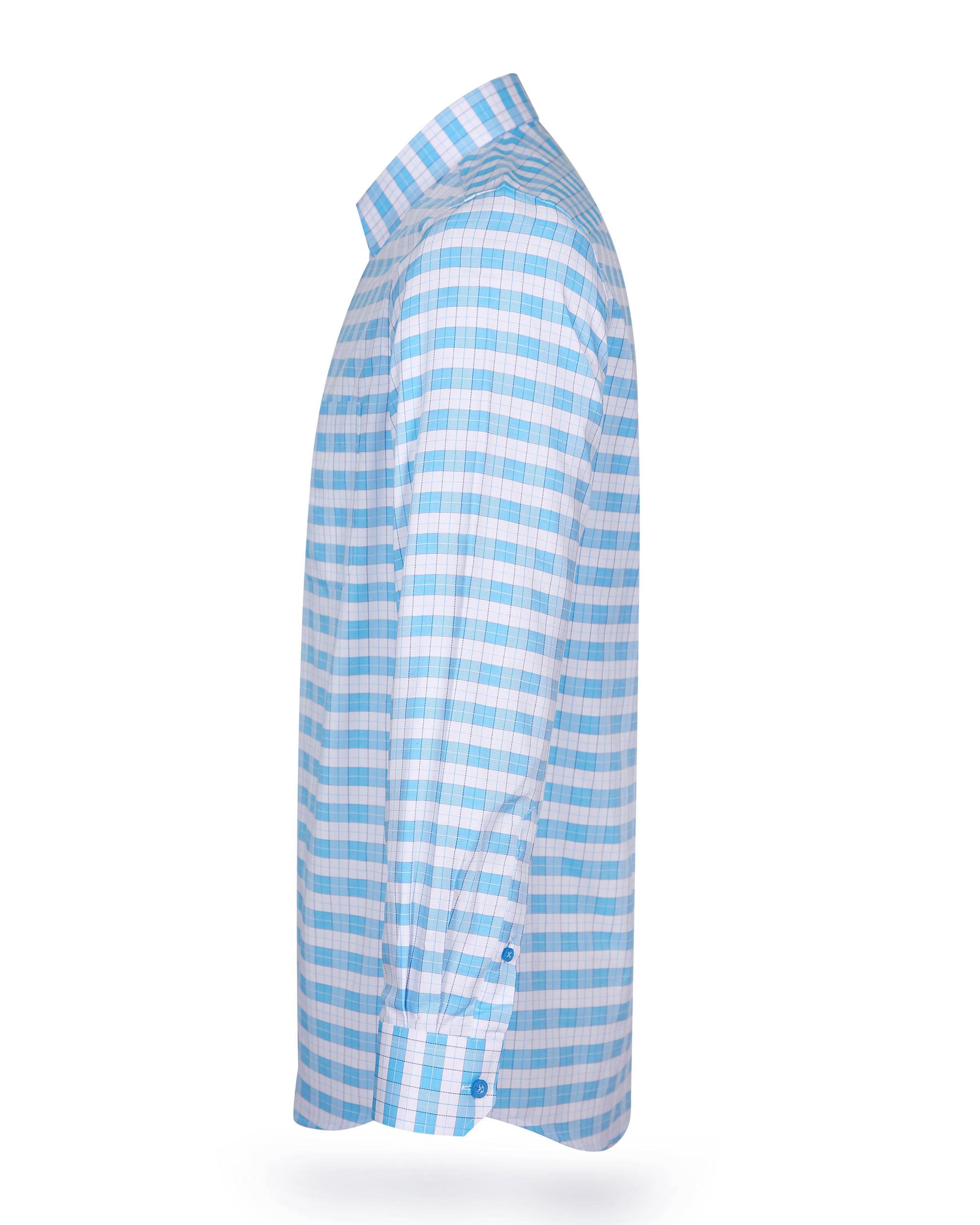 (V) MÔ TẢ: Form Taylor, tai dài Form áo tiêu chuẩn với form áo rộng vừa phải, không ôm sát cơ thể, bó nhẹ ở vùng eo và tay áo. Độ rộng vùng ngực và nách cũng sẽ fit hơn với cơ thể. Không quá rộng như form áo cổ điển. Màu vải nhã nhặn và trung tính dễ dàng phối trang phục tạo sự lịch lãm, nam tính Nút ton-sur-ton khắc logo đẹp mắt phối trọn vẹn màu áo. Logo thêu sắc nét trên túi áo. Chất liệu:50%POLYESTER- 24%COTTON-2%SPANDEX- 24%VISCOSE(BAMBOO) |Mềm mịn|Thấm hút |Kháng khuẩn|Độ thoáng khí cao|Chống tia UV|Chống nhăn|Chống co rút |Nhanh khô|Dễ vệ sinh làm sạch|Đứng phom áo Màu sắc : Màu Xanh họa tiết