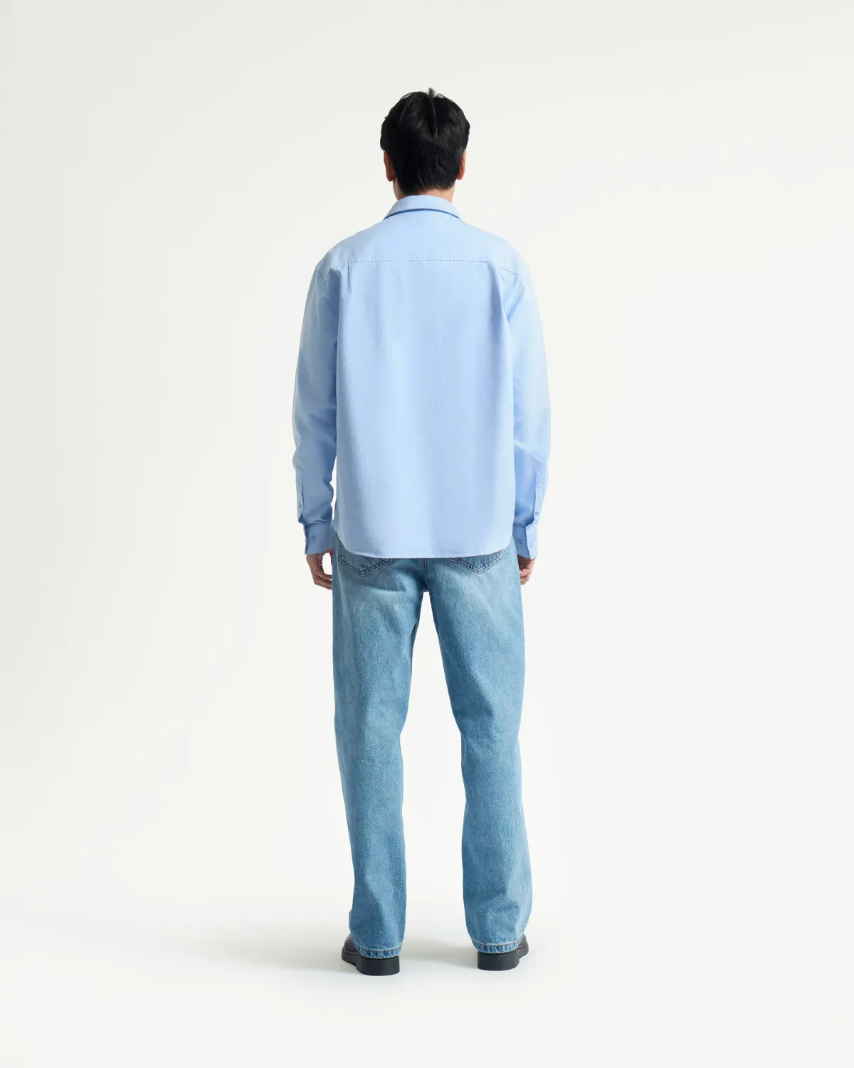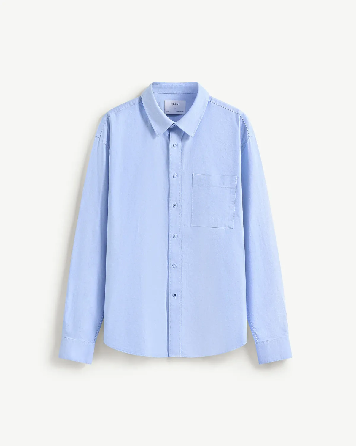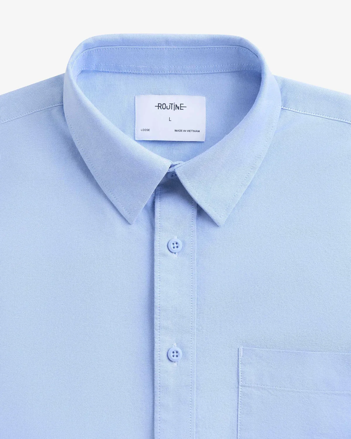 ✨Áo sơ mi nam tay dài oxford trơn xanh nhạt form loose - RT 10F24SHL008 | ROUTINE CÀ MAU