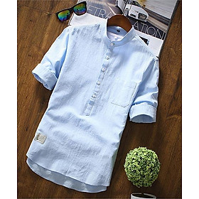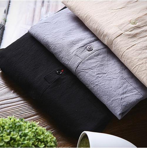 Áo Sơ mi nam dài tay cổ bẻ có túi ngực vải đũi kiểu dáng Basic Chất (0964975999)