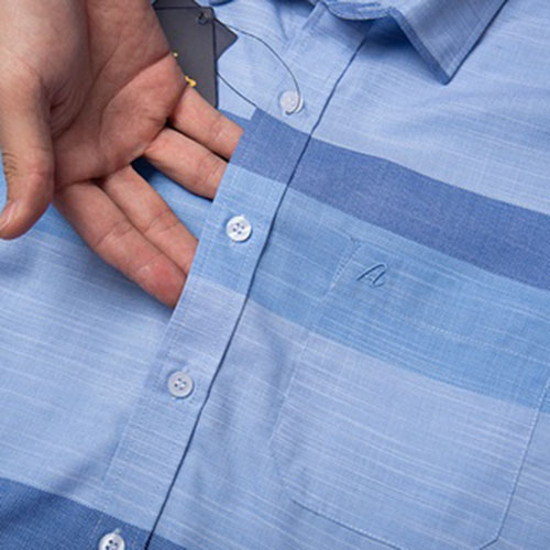 Áo sơ mi nam tay ngắn lai ngang – Khatoco - Mã hàng: A1MN538T2 - Chất liệu: 75% Polyester + 22% Viscose (Bamboo) + 3% Spandex → Vải mềm mại, thoáng mát, co giãn nhẹ,