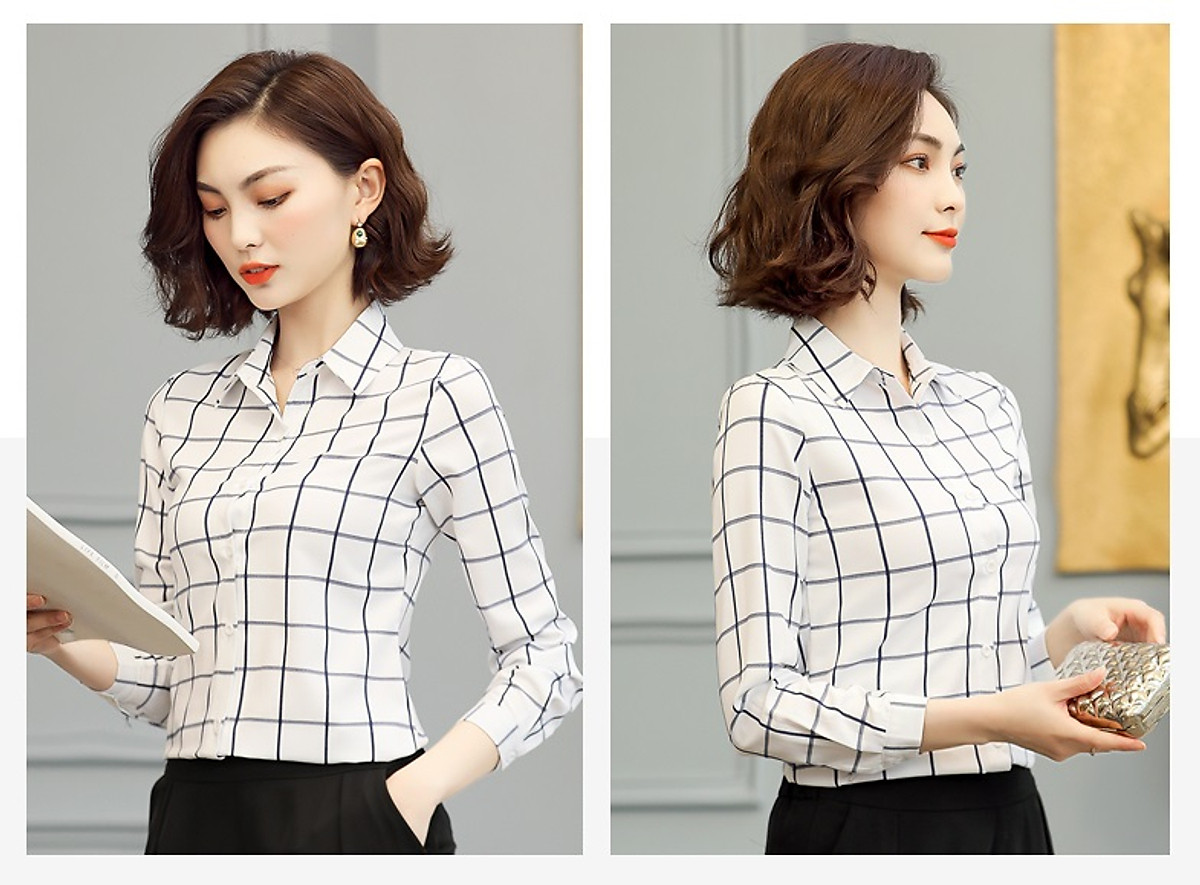 -Sơ mi nữ được thiết kế thanh nhã với kiểu áo form rộng trẻ trung