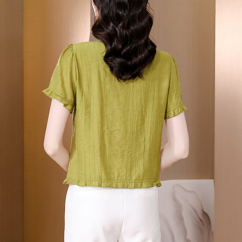 Áo trắng nữ sinh tay ngắn, sơ mi công sở, tay cách điệu nhẹ nhàng, vải KT Silk mềm mại, bigsize đến 80kg  Áo sơ mi xanh cho mẹ cổ chữ V cotton Âu - AICDMEZGSKFO - AIN Closet