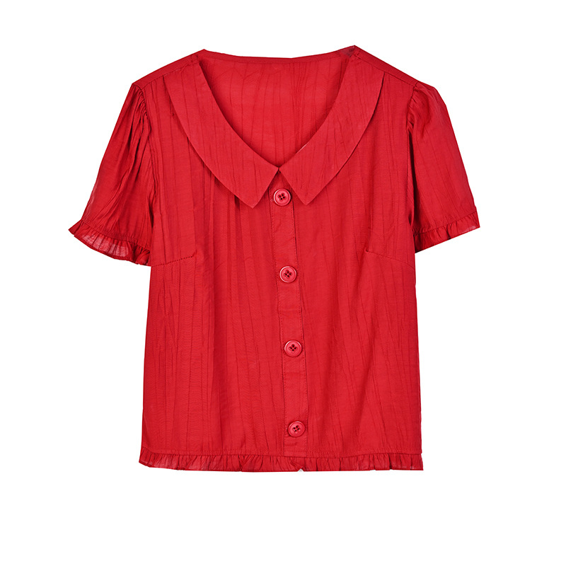 ÁO SƠ MI TAY NGẮN LINEN-V46-014582-OR2  Áo Viền Bèo Phấn TOP211 thời trang thiết kế Hity