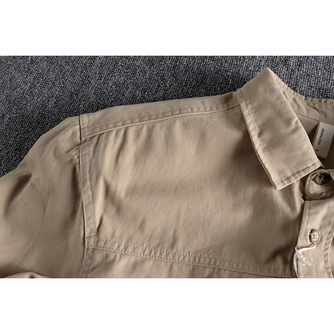 Áo sơmi lính tay dài phong cách off road dã ngoại Được làm bằng chất liệu kaki mềm mặc rất bụi và đúng phom áo Chất liệu vải dày vừa phải nên có thể mặc