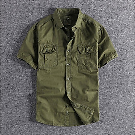 Áo sơ mi Retro túi hộp ngắn tay lính_dã ngoại Áo sơ mi quân đội Wild Casual Chất kaki được wash acid cực bụi , phom chuẩn mặc rất đẹp ạ Model thế hệ mới