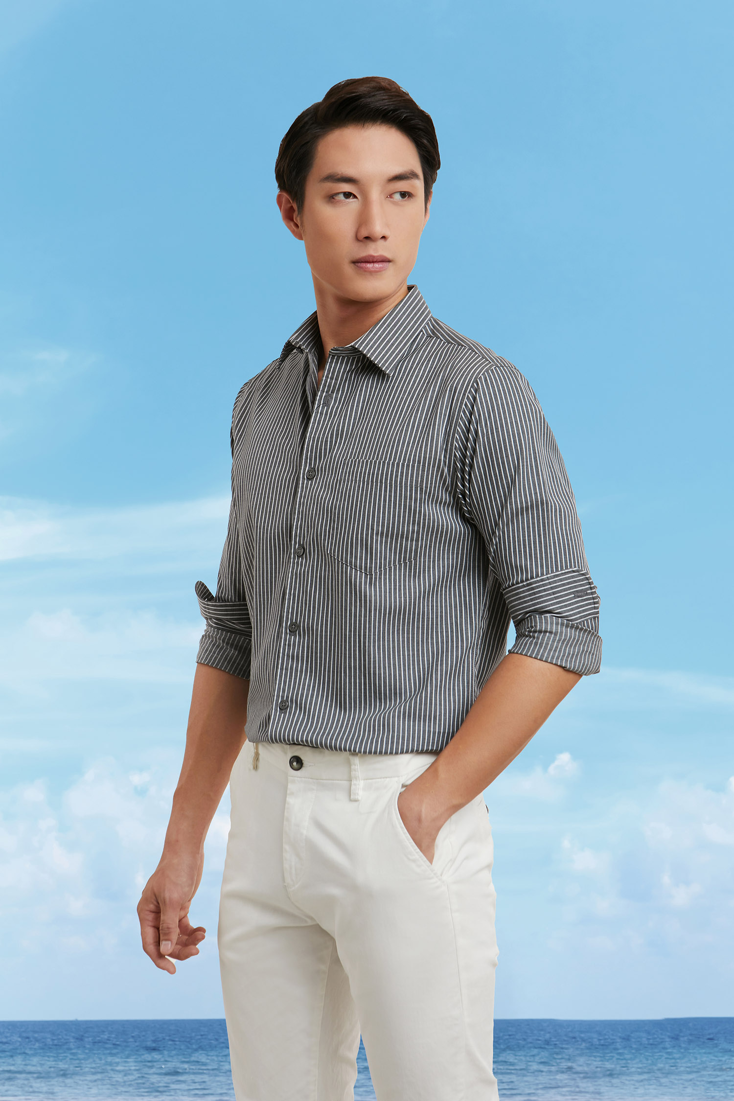 Form Taylor, tay dài Form áo tiêu chuẩn với form áo rộng vừa phải, không ôm sát cơ thể, bó nhẹ ở vùng eo và tay áo. Độ rộng vùng ngực và nách cũng sẽ fit hơn với cơ thể. Không quá rộng như form áo cổ điển. Màu vải nhã nhặn và trung tính dễ dàng phối trang phục tạo sự lịch lãm, nam tính Nút ton-sur-ton khắc logo đẹp mắt phối trọn vẹn màu áo. Logo thêu sắc nét trên túi áo. Chất liệu: 49% bamboo- 49% Microfiber-2% Spandex Mềm mịn |Thấm hút |Kháng khuẩn |Chống tia UV |Độ bền cao |Co giãn |Chống nhăn Màu sắc: trắng sọc