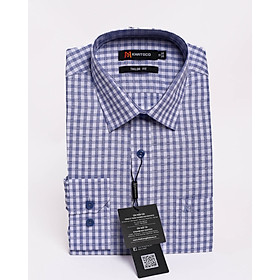 Áo sơ mi nam trung niên, Áo sơ mi nam công sở Anton, Áo sơ mi nam dài tay họa tiết caro xanh Vải cotton thoáng mát, thấm hút tốt, mềm mịn không xù Qúy
