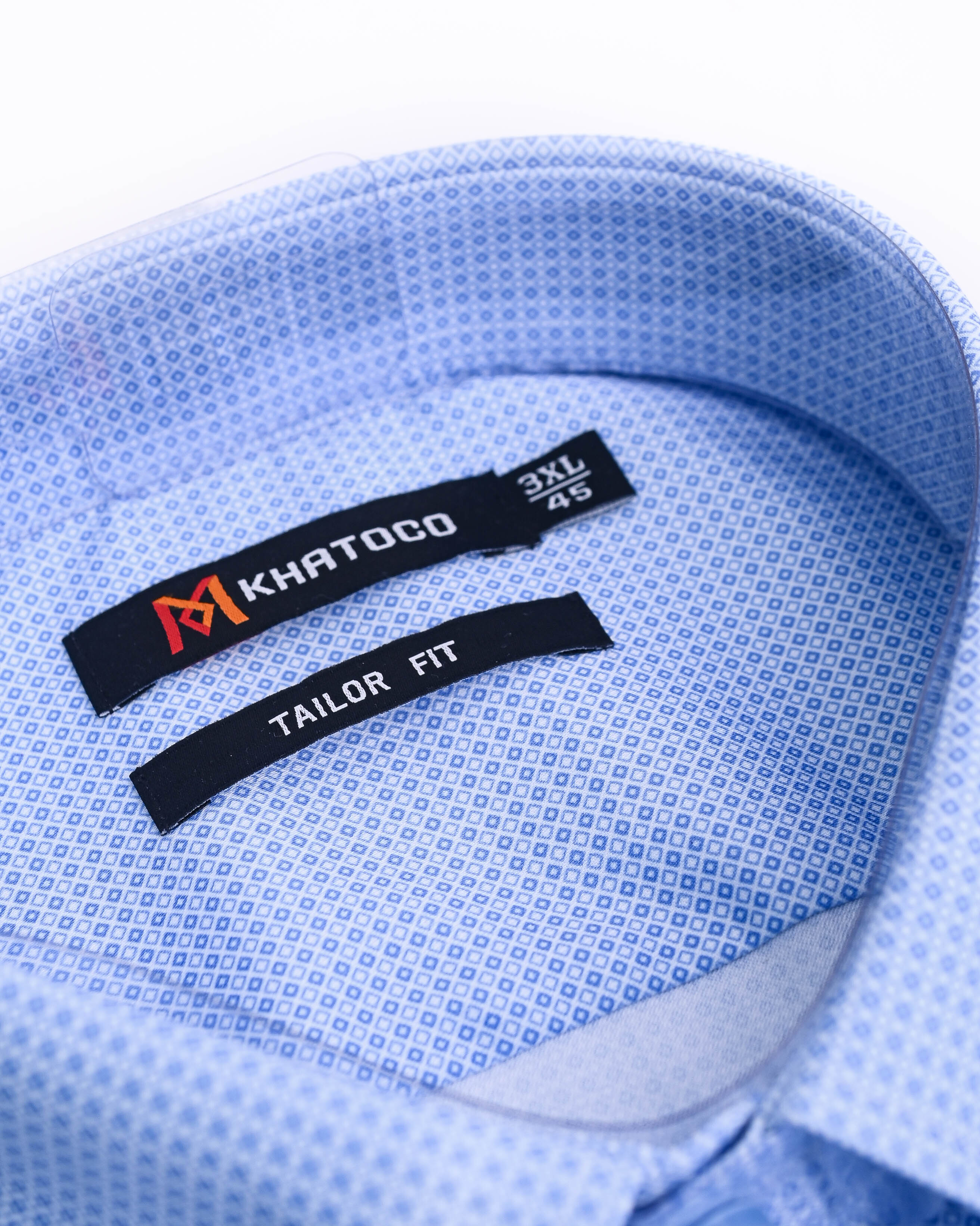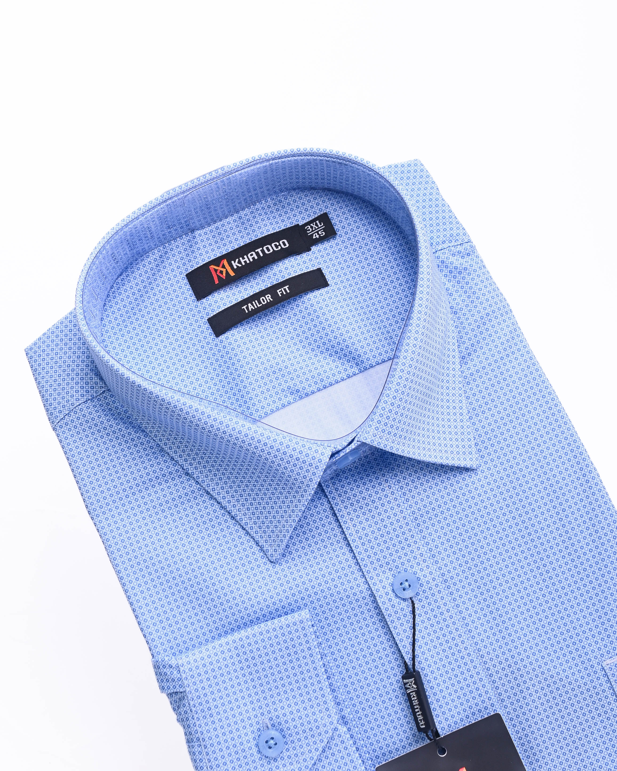 (V) MÔ TẢ: Form Taylor, tai dài Form áo tiêu chuẩn với form áo rộng vừa phải, không ôm sát cơ thể, bó nhẹ ở vùng eo và tay áo. Độ rộng vùng ngực và nách cũng sẽ fit hơn với cơ thể. Không quá rộng như form áo cổ điển. Màu vải nhã nhặn và trung tính dễ dàng phối trang phục tạo sự lịch lãm, nam tính Nút ton-sur-ton khắc logo đẹp mắt phối trọn vẹn màu áo. Logo thêu sắc nét trên túi áo. Chất liệu:50%POLYESTER- 24%COTTON-2%SPANDEX- 24%VISCOSE(BAMBOO) |Mềm mịn|Thấm hút |Kháng khuẩn|Độ thoáng khí cao|Chống tia UV|Chống nhăn|Chống co rút |Nhanh khô|Dễ vệ sinh làm sạch|Đứng phom áo Màu sắc : Màu Xanh họa tiết