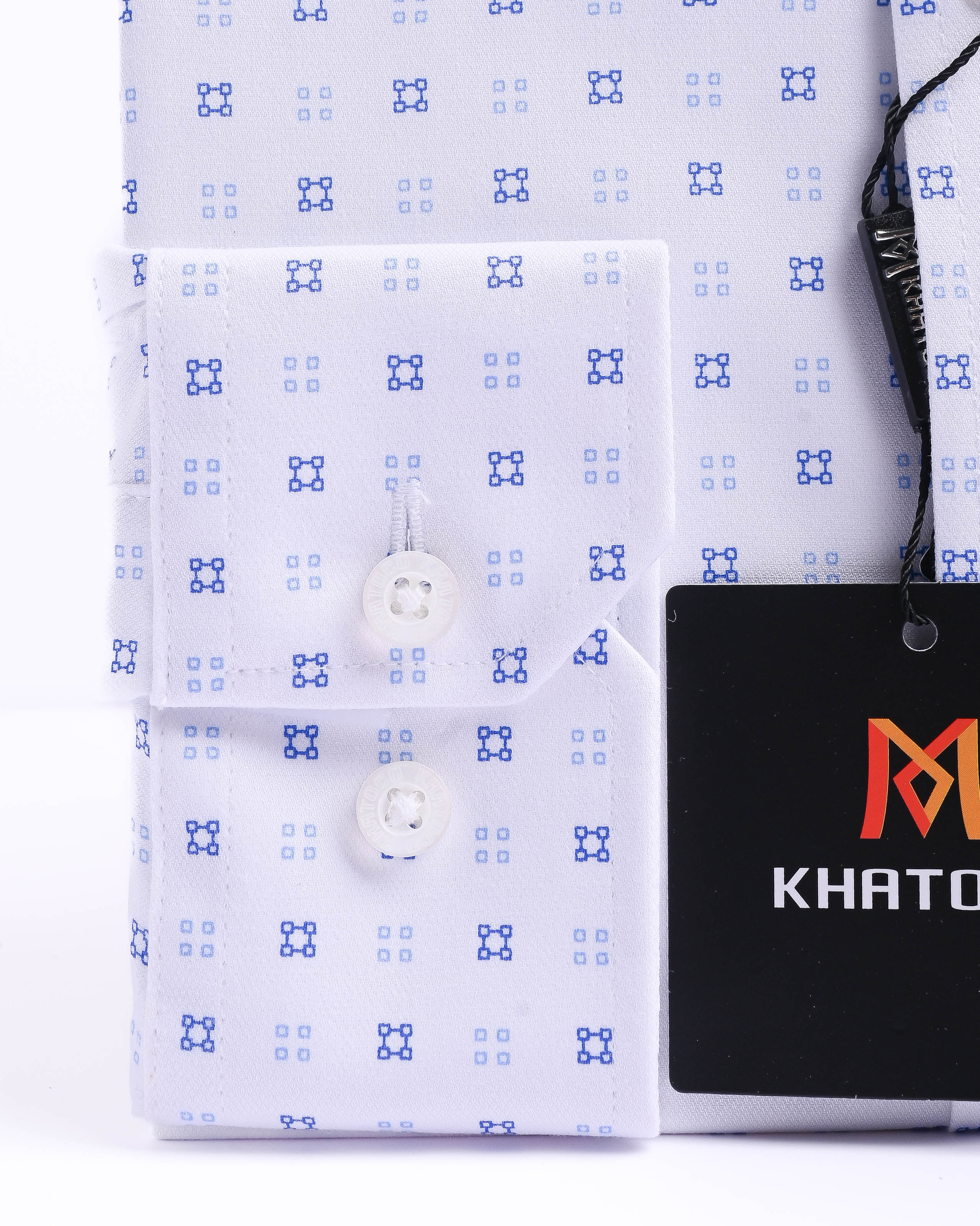 (V) MÔ TẢ: Form Taylor, tai dài Form áo tiêu chuẩn với form áo rộng vừa phải, không ôm sát cơ thể, bó nhẹ ở vùng eo và tay áo. Độ rộng vùng ngực và nách cũng sẽ fit hơn với cơ thể. Không quá rộng như form áo cổ điển. Màu vải nhã nhặn và trung tính dễ dàng phối trang phục tạo sự lịch lãm, nam tính Nút ton-sur-ton khắc logo đẹp mắt phối trọn vẹn màu áo. Logo thêu sắc nét trên túi áo. Chất liệu:50%POLYESTER- 24%COTTON-2%SPANDEX- 24%VISCOSE(BAMBOO) |Mềm mịn|Thấm hút |Kháng khuẩn|Độ thoáng khí cao|Chống tia UV|Chống nhăn|Chống co rút |Nhanh khô|Dễ vệ sinh làm sạch|Đứng phom áo Màu sắc : Màu Xanh họa tiết
