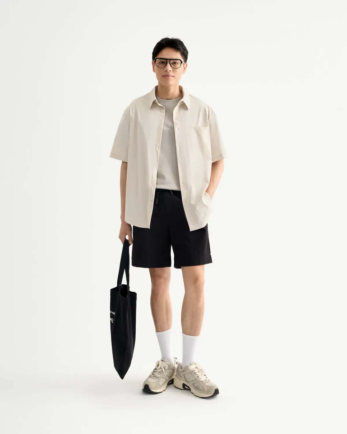 ÁO SƠ MI FORM RỘNG TAY NGẮN được sản xuất bằng công nghệ hiện đại nhất hiện nay mang đến cho chiếc áo sơ mi độ bền cao, phần cổ áo, nẹp áo và măng
