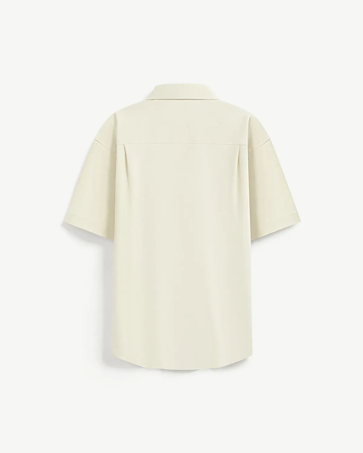 ÁO SƠ MI FORM RỘNG TAY NGẮN được sản xuất bằng công nghệ hiện đại nhất hiện nay mang đến cho chiếc áo sơ mi độ bền cao, phần cổ áo, nẹp áo và măng
