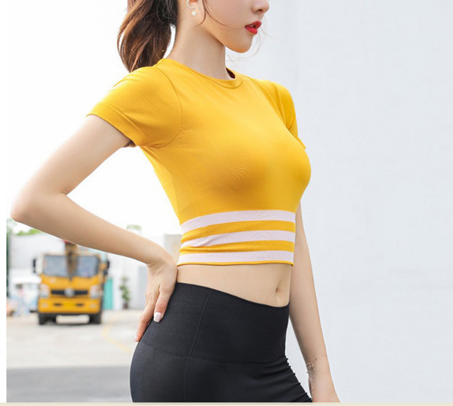Áo Tập thể thao phong cách croptop năng động, trẻ trung Màu sắc: Vàng, Xanh, Hồng, Tím nhạt Size S (dưới 48kg)__Size M(49 ~ 54kg)__Size L (55 ~ 58kg)__Size XL (trên 58kg) Chất liệu vải