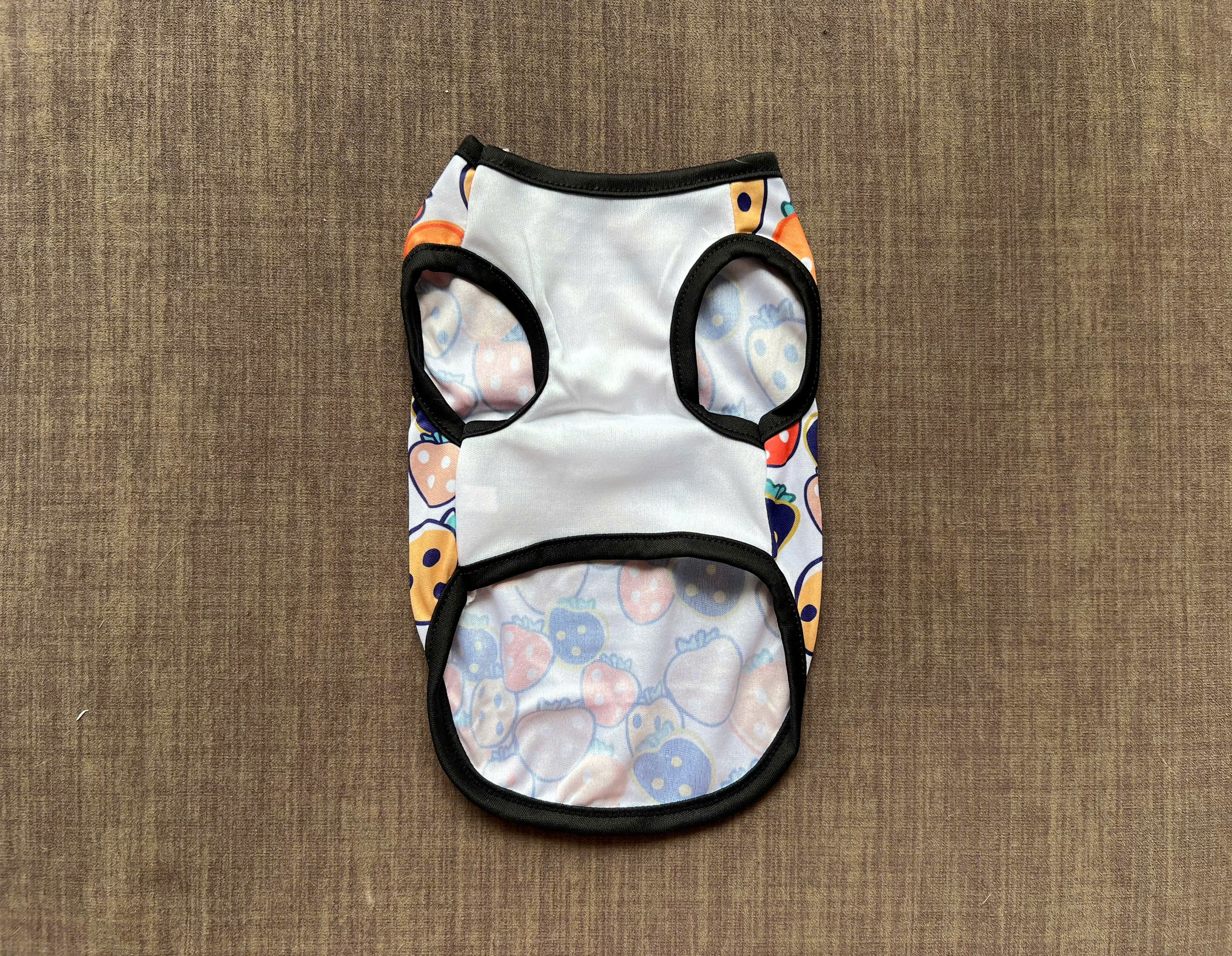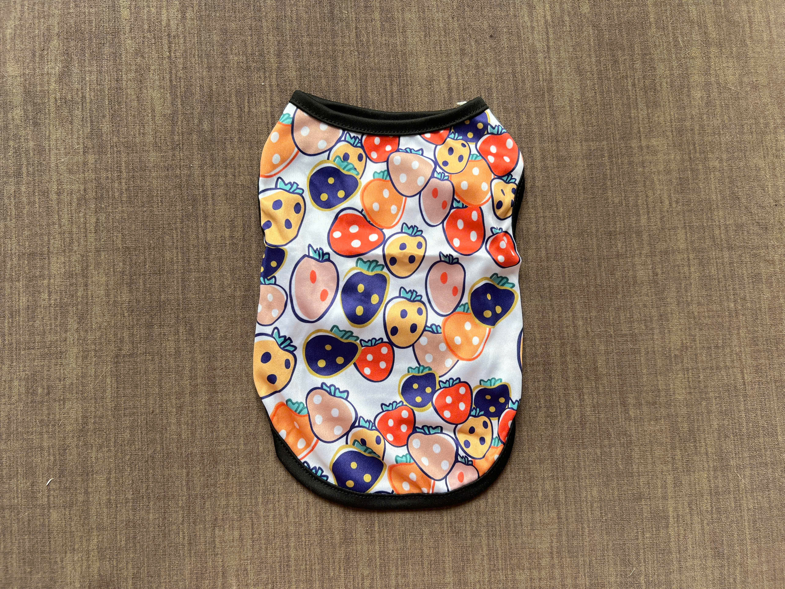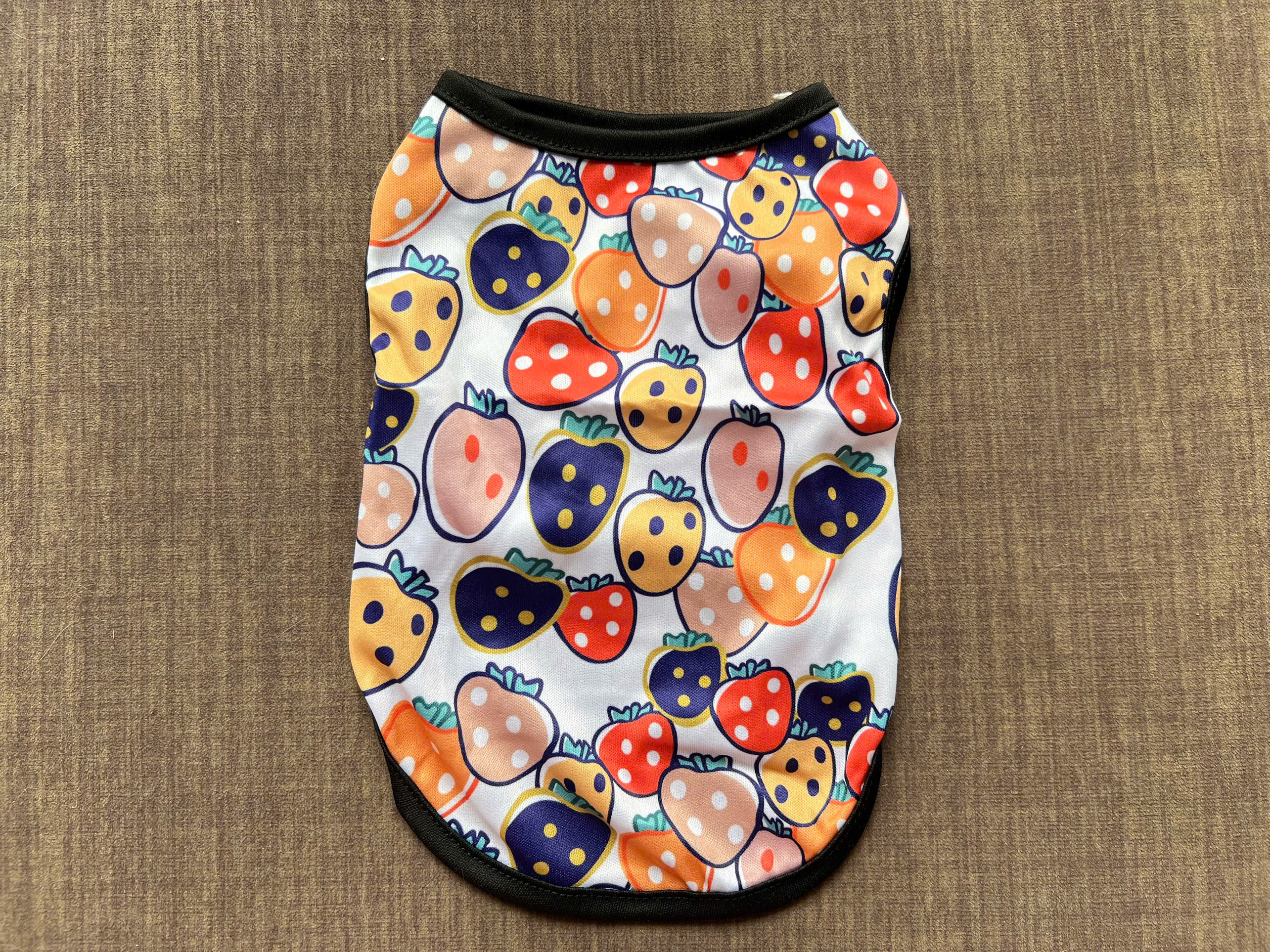ÁO THUN BA LỖ DÂU TÂY THÔNG HƠI SIÊU DỄ THƯƠNG TỪ 1-5KG DÀNH CHO THÚ CƯNG CHÓ MÈO 1. Thiết kế : Áo thun thông hơi cá tính, dễ thương. In quả dâu tây