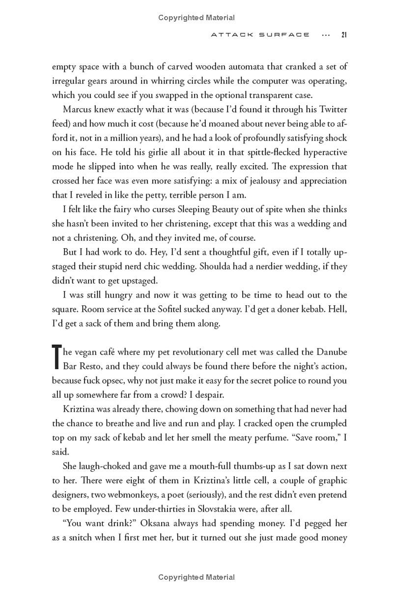 Attack Surface takes us five minutes into the future, to a world where everything is connected and everyone is vulnerable.