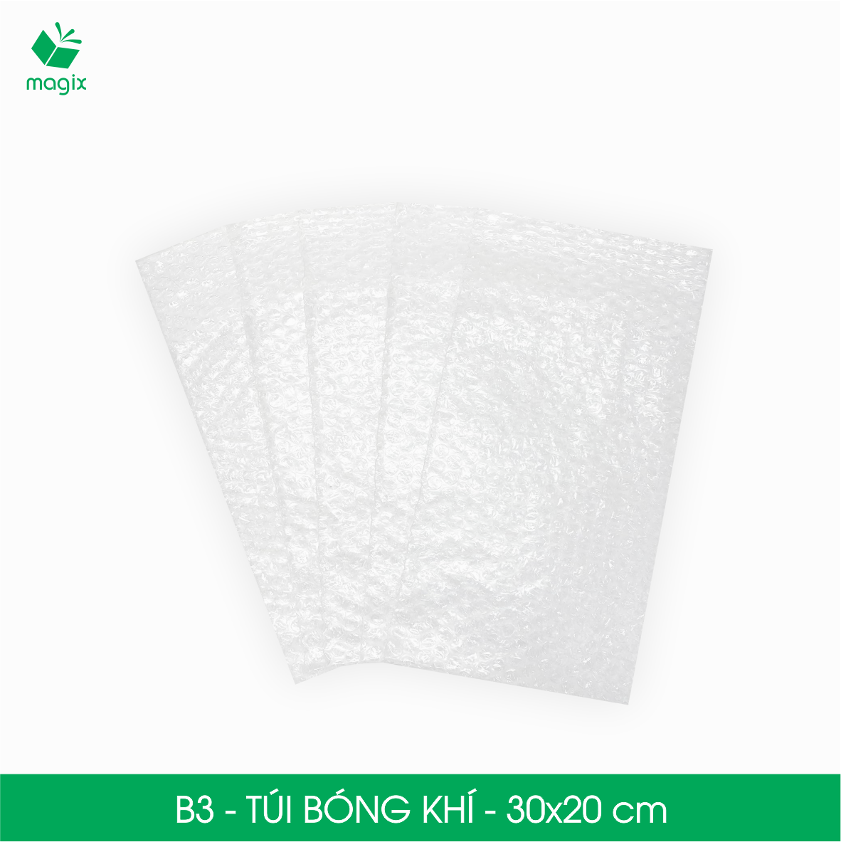 ĐẶC ĐIỂM SẢN PHẨM Túi khí đóng gói là mặt hàng đóng gói nhẹ, chắc chắn - mang lại sự đảm bảo về lớp đệm đáng tin cậy và giảm chi phí vận chuyển Cố định và bảo vệ đồ dễ vỡ khỏi bị sốc, rung và KHÔNG TRUYỀN LỰC trong túi bong bóng Tiện lợi, sử dụng đơn giản - dạng túi hơi, tiện dụng, chỉ cần bỏ sản phẩm vào túi và quấn lại mà không cần phải cắt giúp tiết kiệm thời gian Bền dẻo, chống thấm nước - cuộn bóng khí được làm bằng nhựa nguyên sinh với độ dẻo tuyệt vời, không dễ bị rách, thủng và bảo vệ vật khô ráo từ môi trường ướt bên ngoài Đa dạng kích thước, phù hợp nhu cầu đóng gói cụ thể ️ Lưu ý: Sản phẩm dễ cháy, tránh lửa CÔNG DỤNG Bảo vệ các vật dụng, đồ vật đựng chất lỏng dễ vỡ: • Bát đĩa, đồ sưu tầm, thủy tinh • Mỹ phẩm, nước hoa, son • Thiết bị điện tử và các thiết bị nhỏ QUY CÁCH KỸ THUẬT Chất liệu: Nhựa nguyên sinh Màu sắc: Trong suốt Hình dáng thiết kế: Túi 1 đầu hở Mã sản phẩm - Kích thước (phủ bì): • B1 - 15x10 cm • B2 - 20x15 cm • B3 - 30x20 cm • B3A - 25x25 cm • B3B - 40x30 cm