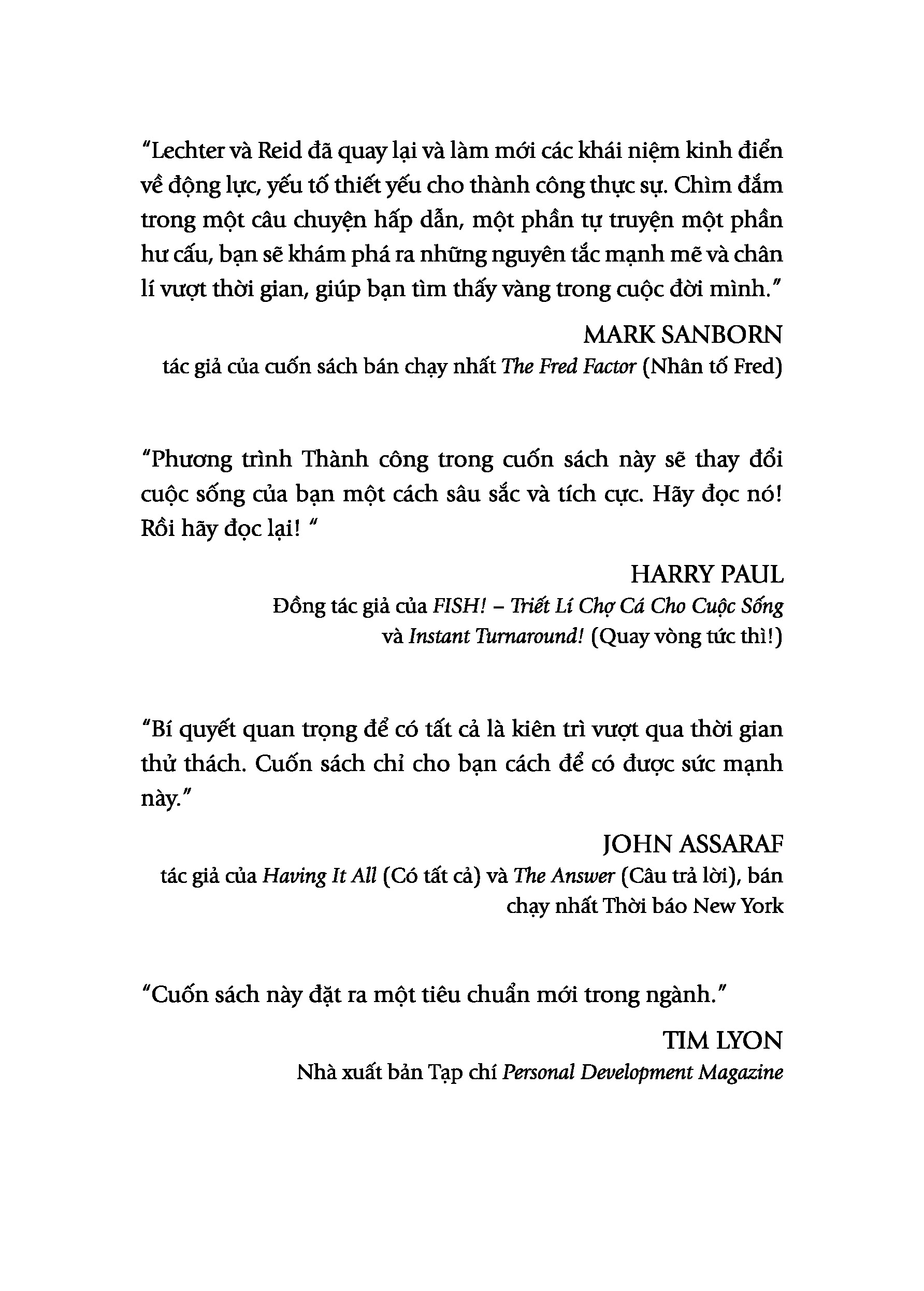 Ngay từ khi mới ra đời, cuốn sách lập tức trở thành sách bán chạy nhất và tiếp tục truyền cảm hứng cho nhiều độc giả. Nó đã được xuất bản trên toàn thế giới và được dịch ra hơn ba mươi ngôn ngữ. Trong ấn bản này, tác giả đã thêm một hướng dẫn triển khai ở cuối để giúp bạn xác định Phương trình Thành công của riêng mình, cũng như hỗ trợ độc giả tận dụng phương trình đó.