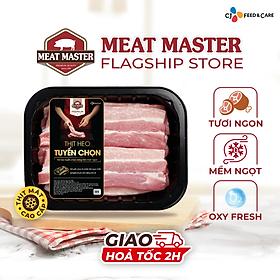 Với sản phẩm tươi sống, trọng lượng thực tế có thể chênh lệch khoảng 10%. Thịt vai Meat Master là phần thịt nằm ở khúc giữa cổ và vai heo. Đây là phần thịt heo