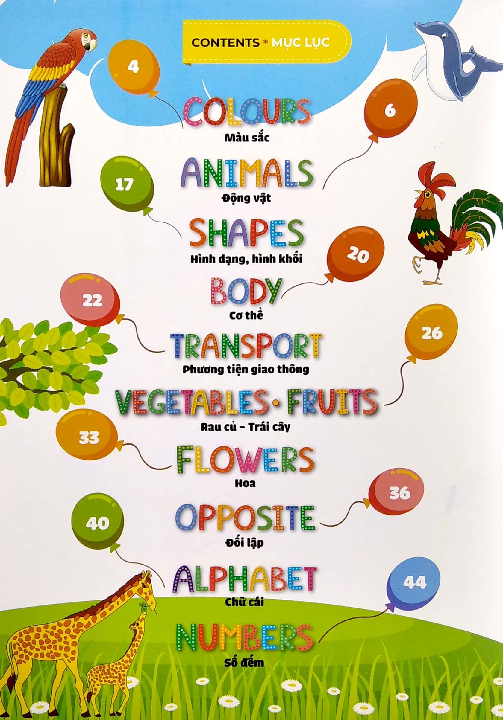 Bách khoa hình ảnh đầu tiên cho bé, song ngữ Anh - Việt, dành cho bé 0-6 tuổi (My First picture encyclopedia ) là những cuốn sách Anh - Việt vô cùng bổ ích dành cho các bé từ 0 đến 6 tuổi bắt đầu tập nói tiếng Anh. Bé sẽ được phát triển vốn từ tiếng Anh thông qua các chủ đề gần gũi như Giao thông, Bảng chữ cái, Các vật dụng trong nhà hay các chủ đề mang tính khám phá như Động vật… Không những thế, việc chọn lựa phương pháp chuyển tải thú vị của cuốn sách đã mở ra cho các em một thế giới hình ảnh sinh động và đầy màu sắc, giúp bé tiếp thu kiến thức và ghi nhớ dễ dàng hơn.