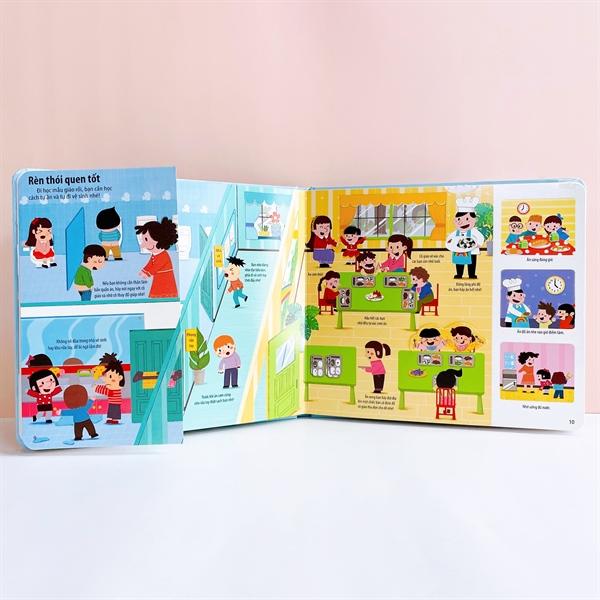 Bách khoa kỹ năng sống đa tương tác - Những hoạt động ở trường mẫu giáo giúp con vui vẻ đến lớp là cuốn sách Lật mở - Chuyển động có nội dung vô cùng