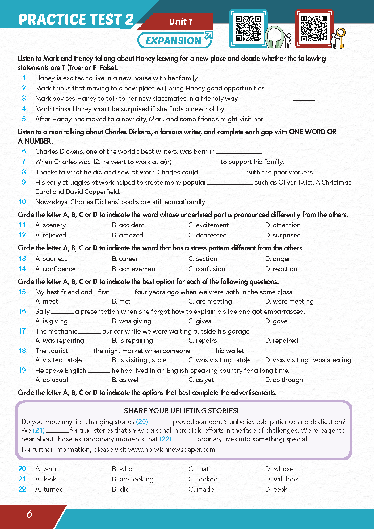 Practice Tests Grade 10 - 11 - 12 được biên soạn nhằm giúp học sinh củng cố kiến thức tiếng Anh lớp 10 và trang bị cho các em nguồn tài liệu luyện tập chuẩn
