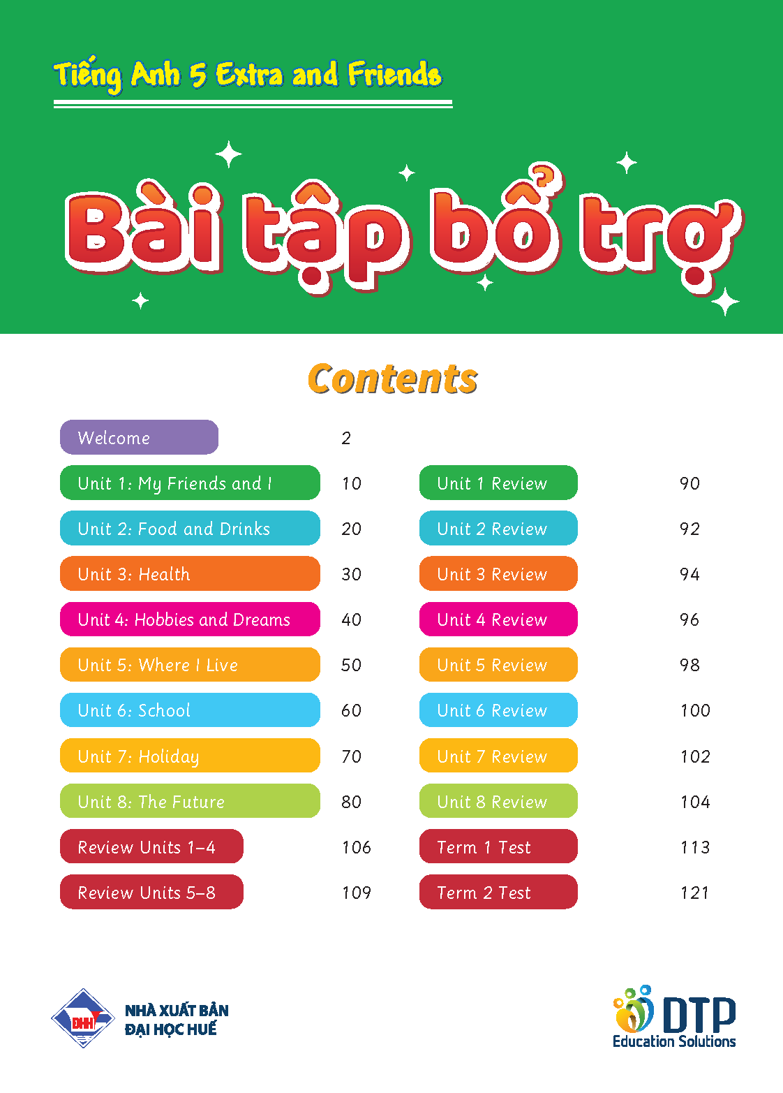Mua tại TiktokEXTRA and FRIENDS là một khóa học 5 cấp độ dành cho học sinh sơ cấp Tiếng Anh. Bộ sách theo chương trình giảng dạy Việt Nam và Khung Tham chiếu Chung Châu Âu về Ngôn ngữ (CEFR). Bộ sách nhằm mục đích phát triển các kỹ năng thiết yếu của thế kỷ 21 mà học sinh cần đối với thế giới hiện đại thông qua các hoạt động và nhiệm vụ khác nhau. Tiếng Anh 5 EXTRA and FRIENDS đã được Bộ Giáo dục và Đào tạo thẩm định và phê duyệt.