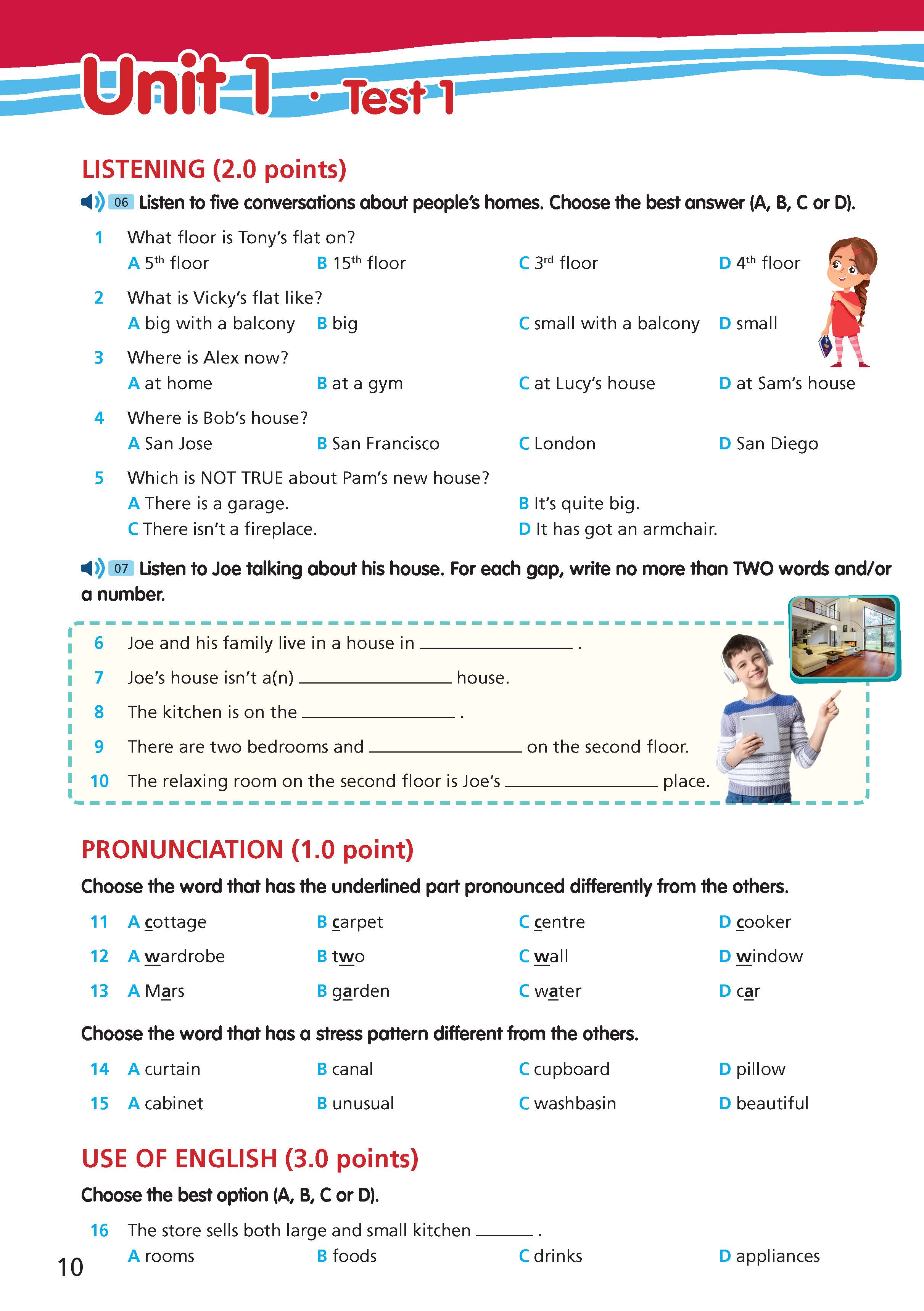 Giải Bài Tập Bổ Trợ Tiếng Anh 6 Right On (Unit 1 Test 1) Full Cả Bài Nghe Listening
