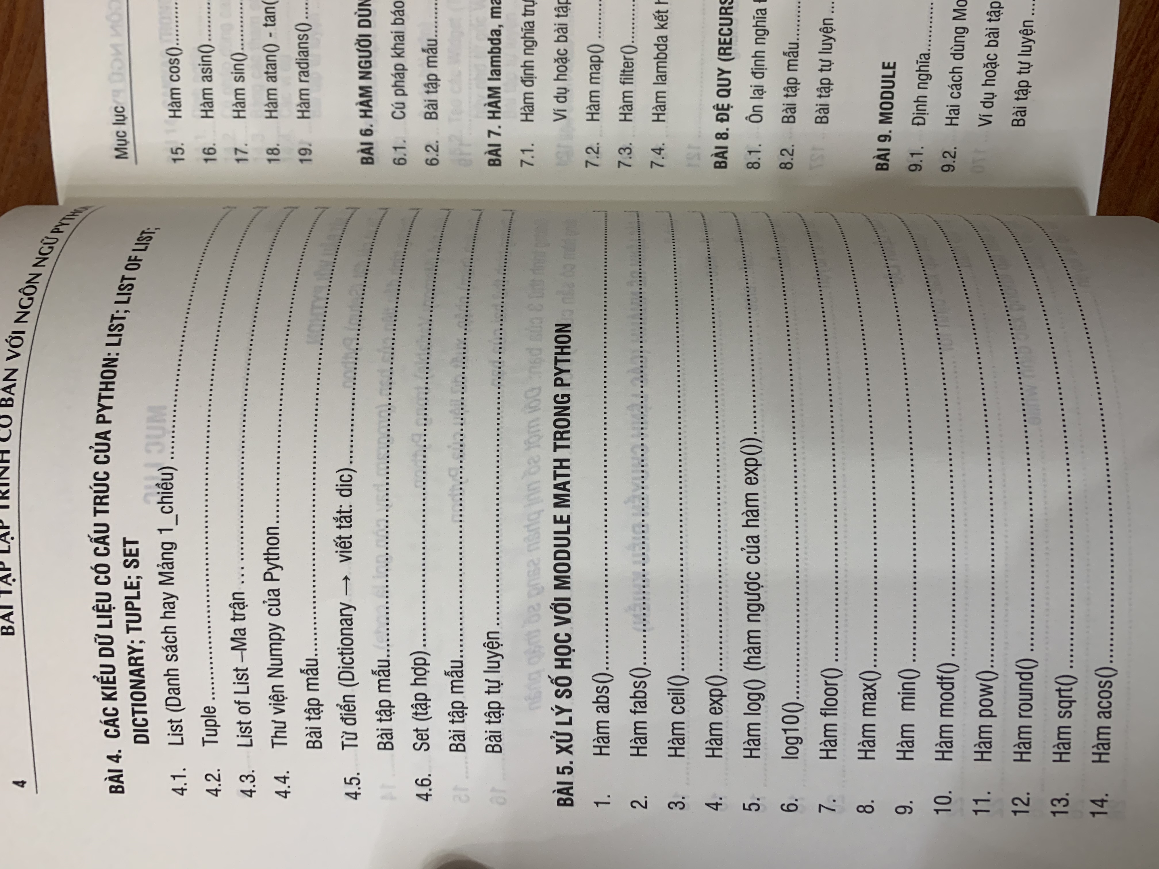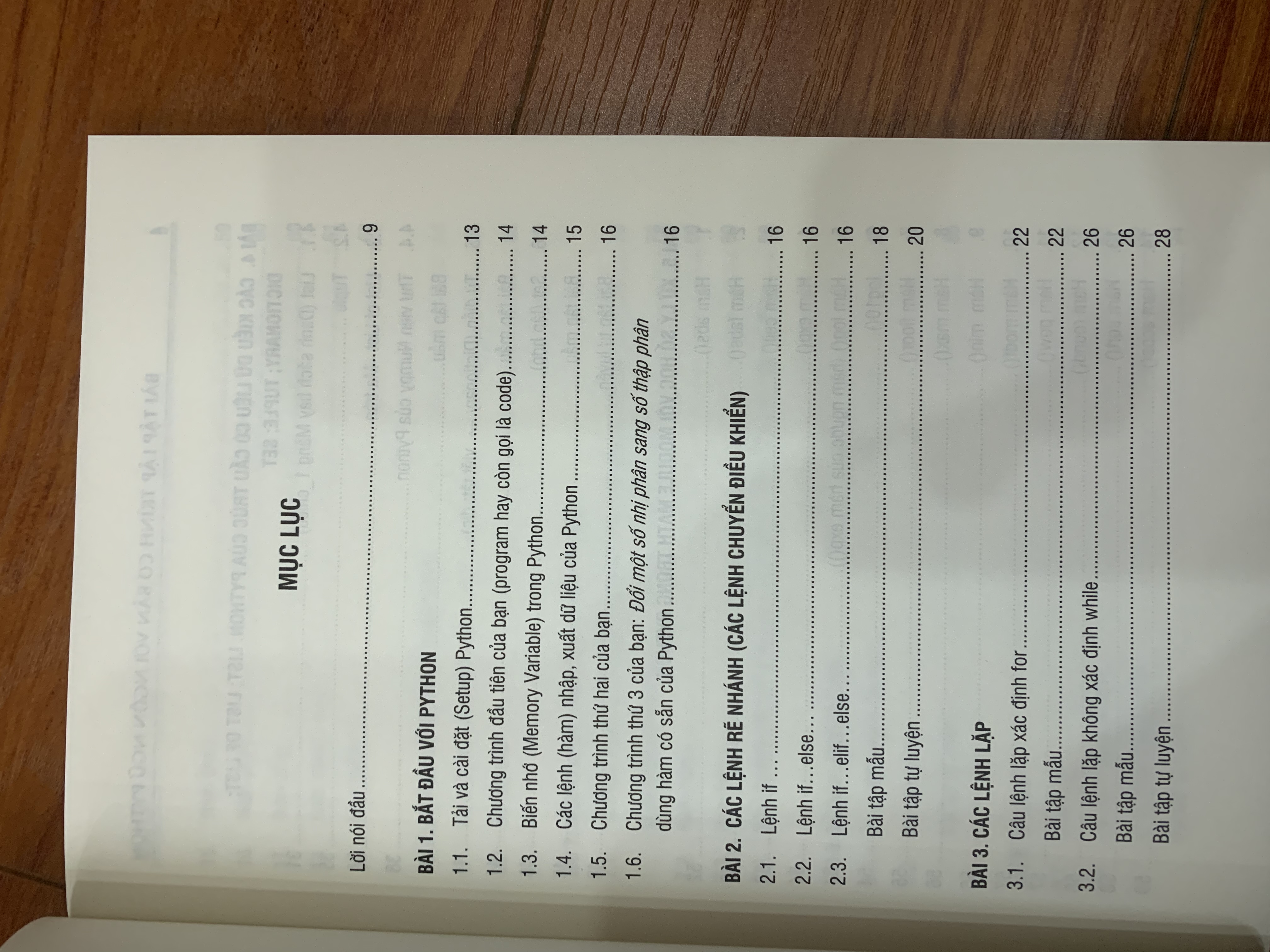 NỘI DUNG SÁCH BÀI 1. BẮT ĐẦU VỚI PYTHON BÀI 2. CÁC LỆNH RẼ NHÁNH (CÁC LỆNH CHUYỂN ĐIỀU KHIỂN) BÀI 3. CÁC LỆNH LẬP BÀI 4. CÁC KIỂU DỮ LIỆU CÓ CẤU TRÚC CỦA