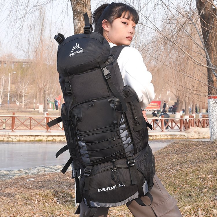 Mô Tả Sản Phẩm – Balo du lịch chuyên dụng, chất liệu vải poliester đặc biệt giúp chống thấm nước và chống xước. – Balo có kích thước 90L – Dây khoác và phí sau