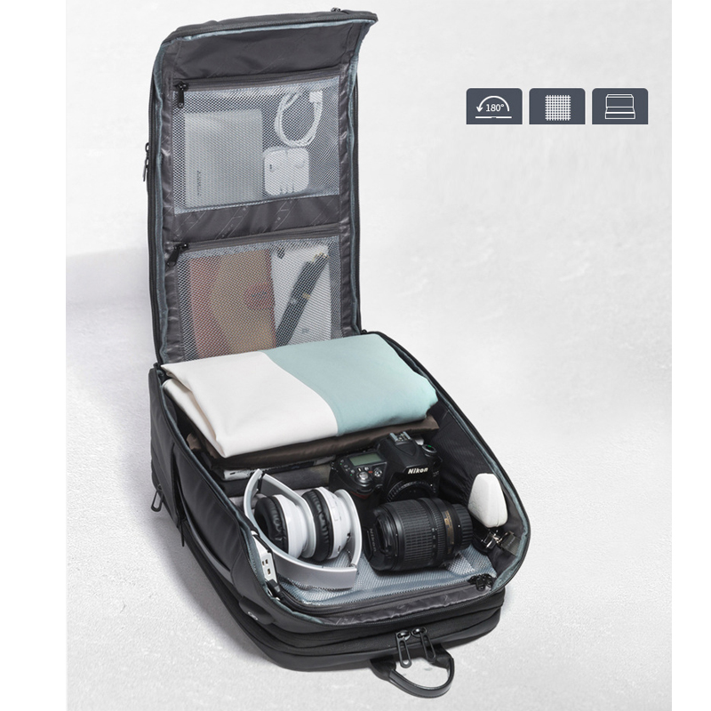 FEATURES - Business backpack with dedicated compartment to protect 15.6" laptop - Spacious U-shaped main compartment opening design increases luggage accessibility - Organized storage in the front compartment keeps essentials neatly organized - Expandable side
