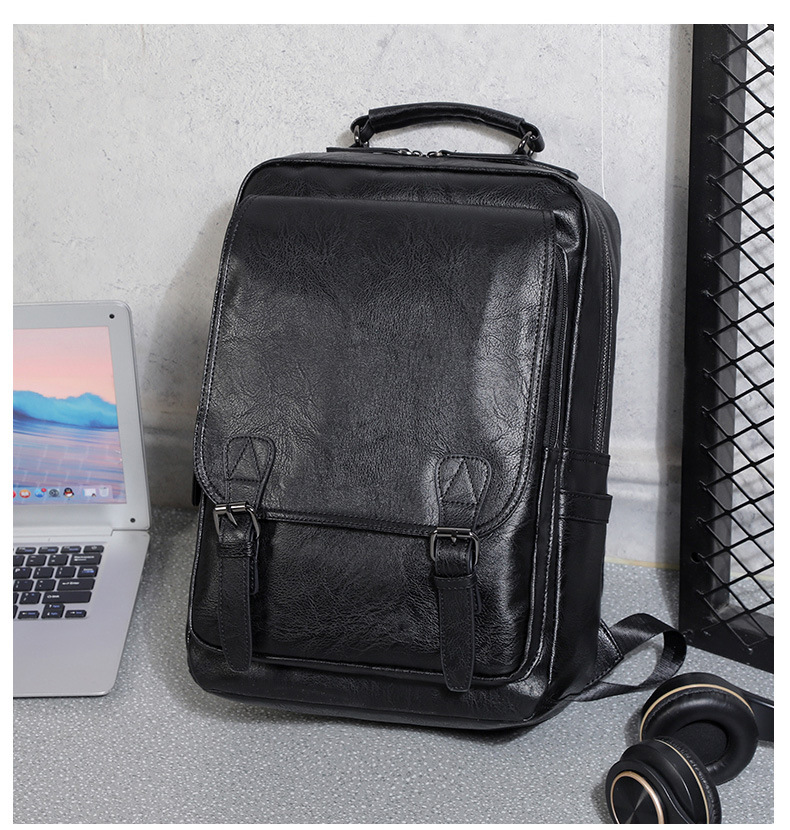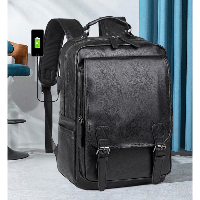 Chiếc Balo laptop nam nữ 15”, ba lô đi làm, đi học đựng máy tính 15inch ngăn trước khoá gài với thiết kế dáng đứng cùng chi tiết ngăn trước khoá gài phối da vân tạo
