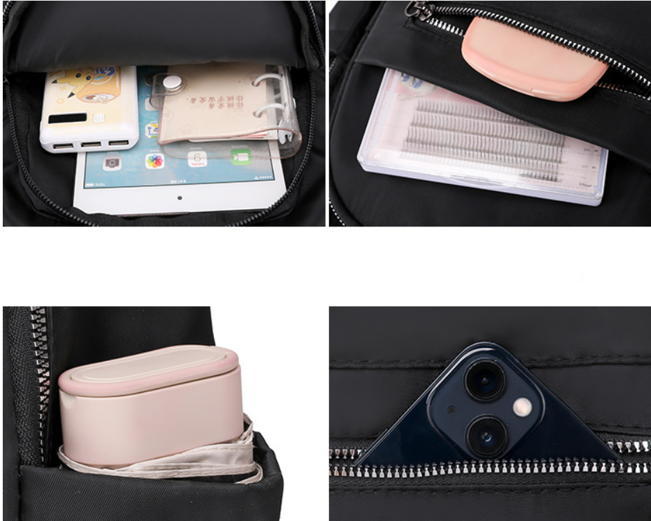 Kích thước túi: Trung bình Công suất: 20-35L Cấu trúc bên trong túi: Túi điện thoại di động, Túi tài liệu Mở nắp: dây kéo Chất liệu: Nylon Đã khóa hay không: Không Che mưa