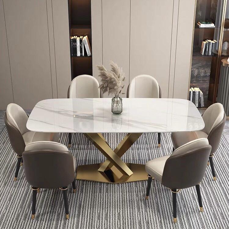 ✨Bàn ăn mặt đá ceramic bóng chân chéo chữ X inox mạ vàng