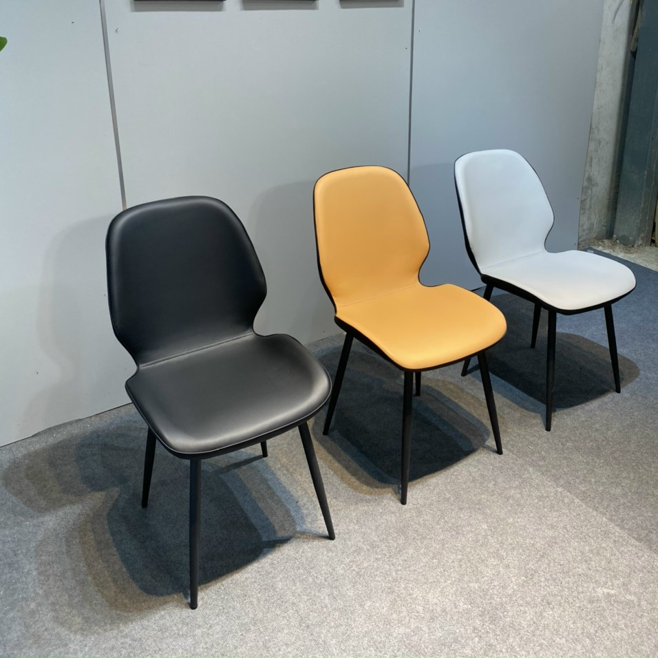 Ghế ăn bọc da cao cấp ở bề mặt tiếp xúc, chân sơn tĩnh điện đen nhám