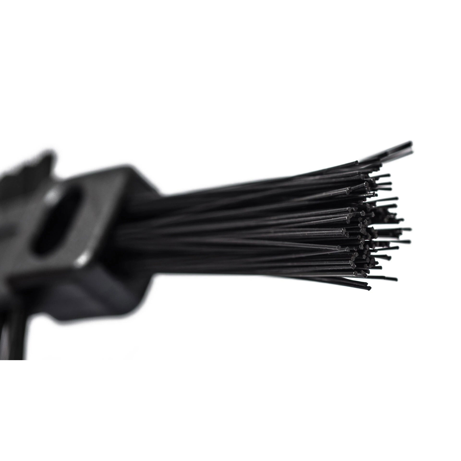 Bàn chải 3 đầu Muc-Off chất lượng cao với ba đầu bàn chải lông nylon cứng và một đầu cạo bùn tích hợp để gạt bỏ bùn. Nó hoàn hảo để vệ sinh ổ líp, cùi đề, líp xe và sên xe. ***Lưu ý: Để duy trì hiệu suất của tất cả các loại bàn chải, tránh sử dụng với nước nóng và trên các bộ phận có nhiệt độ cao. Khuyến nghị chỉ nên sử dụng nước ấm và để cho các bộ phận máy có nhiệt độ cao nguội hẳn trước khi cọ rửa.