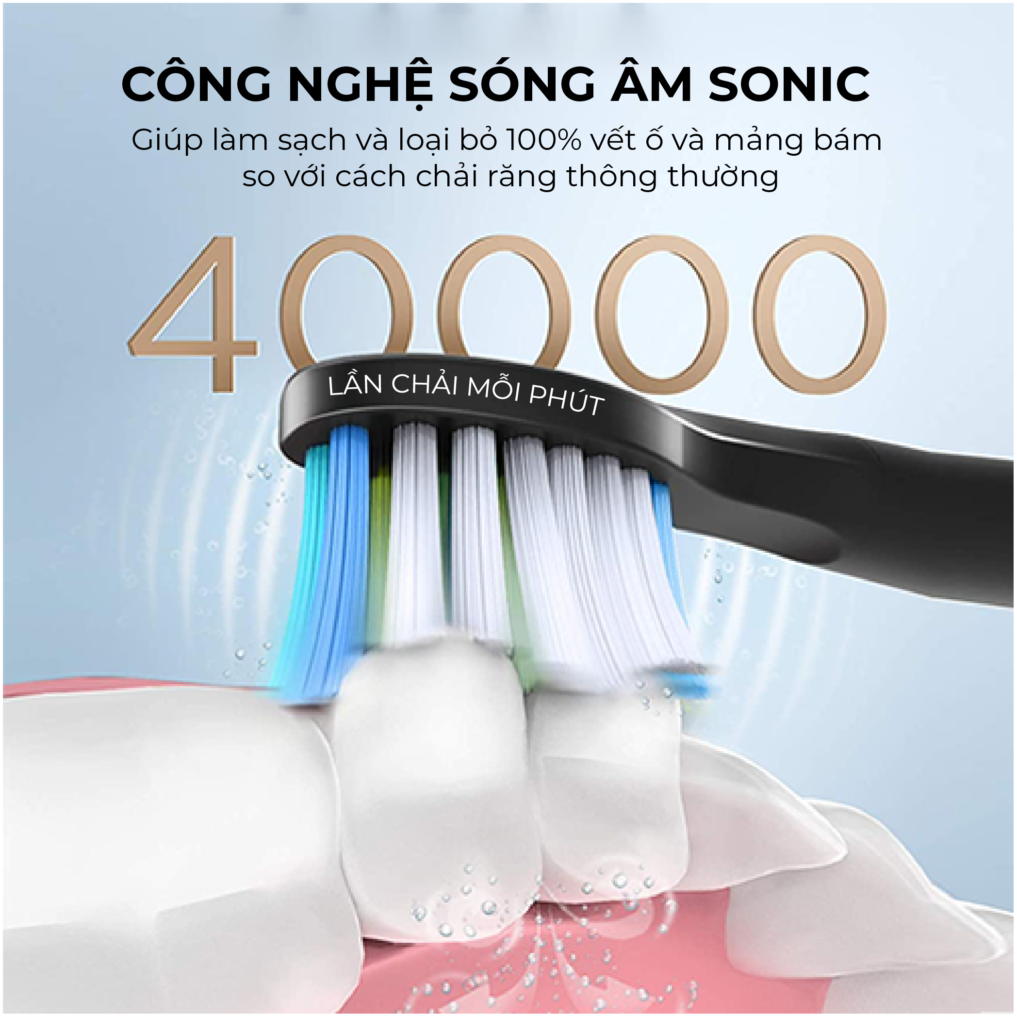 - Rung 40,000 lần 1 phút, đủ mạnh để đánh tan mảng bám cứng đầu nhất mà bàn chải thông thường không thể làm được