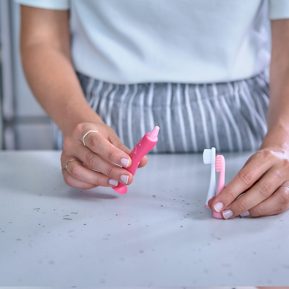 Bàn chải đánh răng silicon cho bé Marcus & Marcus, từ 2 tuổi - Hồng