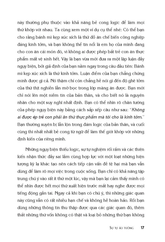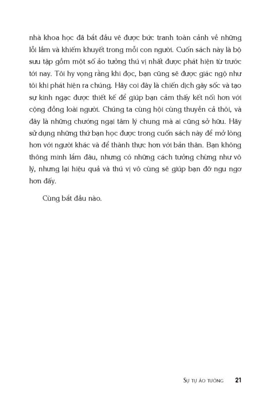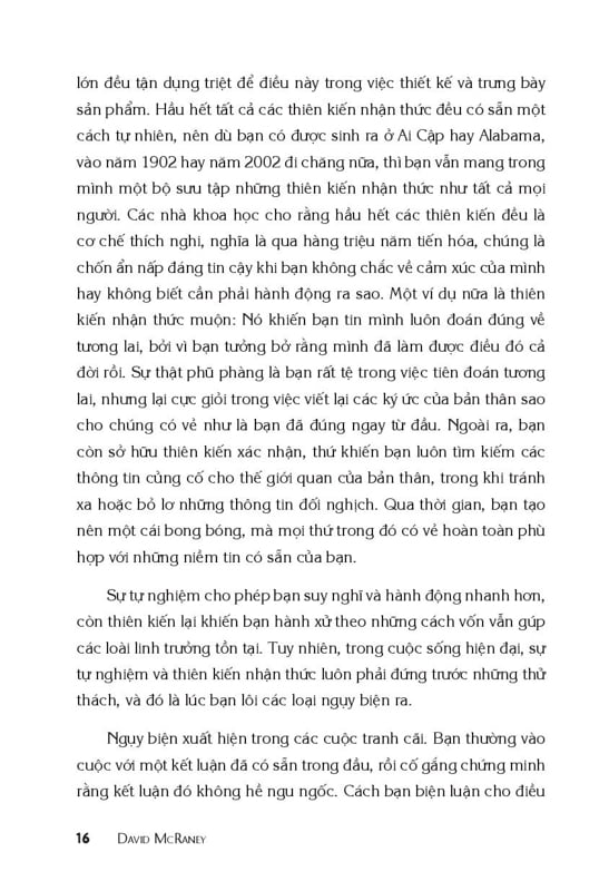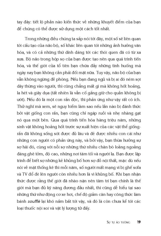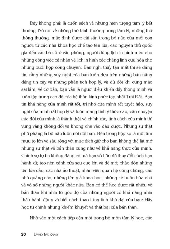 Từ ngụy biện dựa vào niềm tin phổ biến cho tới hiệu ứng phản tác dụng, hãy cùng tìm hiểu về 19 hiện tượng tâm lý lúc nào cũng tồn tại trong bạn dù bạn có nhận ra hay không. Ngoài ra, bạn cũng sẽ được biết thêm sự thật về cái gọi là bản ngã, cùng tính toán để tìm ra cái giá của hạnh phúc, và khám phá ra cách để không rơi vào bẫy của bộ não từ bây giờ cho đến mãi mãi về sau.