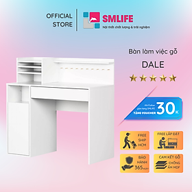 Mua tại TiktokMang đậm phong cách nội thất đơn giản, bàn làm việc gỗ SMLIFE Dale là một sự bổ sung hoàn hảo cho phòng làm việc, phòng đọc sách của bạn. Bàn làm việc Dale được thiết kế với nhiều tầng kệ và ngăn kéo mang đến nhiều không gian giúp bạn tổ chức sách vở và các vật dụng trang trí thoải mái. Sản phẩm là một giải pháp phù hợp cho những văn phòng hoặc căn hộ diện tích nhỏ. Sử dụng vật liệu ván ép công nghiệp MDF chống ẩm phủ Melamine cao cấp giúp bàn làm việc, bàn học gỗ SMLIFE có độ bền cao, chống trầy và chống ẩm rất tốt. Bạn có thể tự lắp đặt sản phẩm dễ dàng với các phụ kiện và hướng dẫn đi kèm. ĐẶC ĐIỂM SẢN PHẨM: