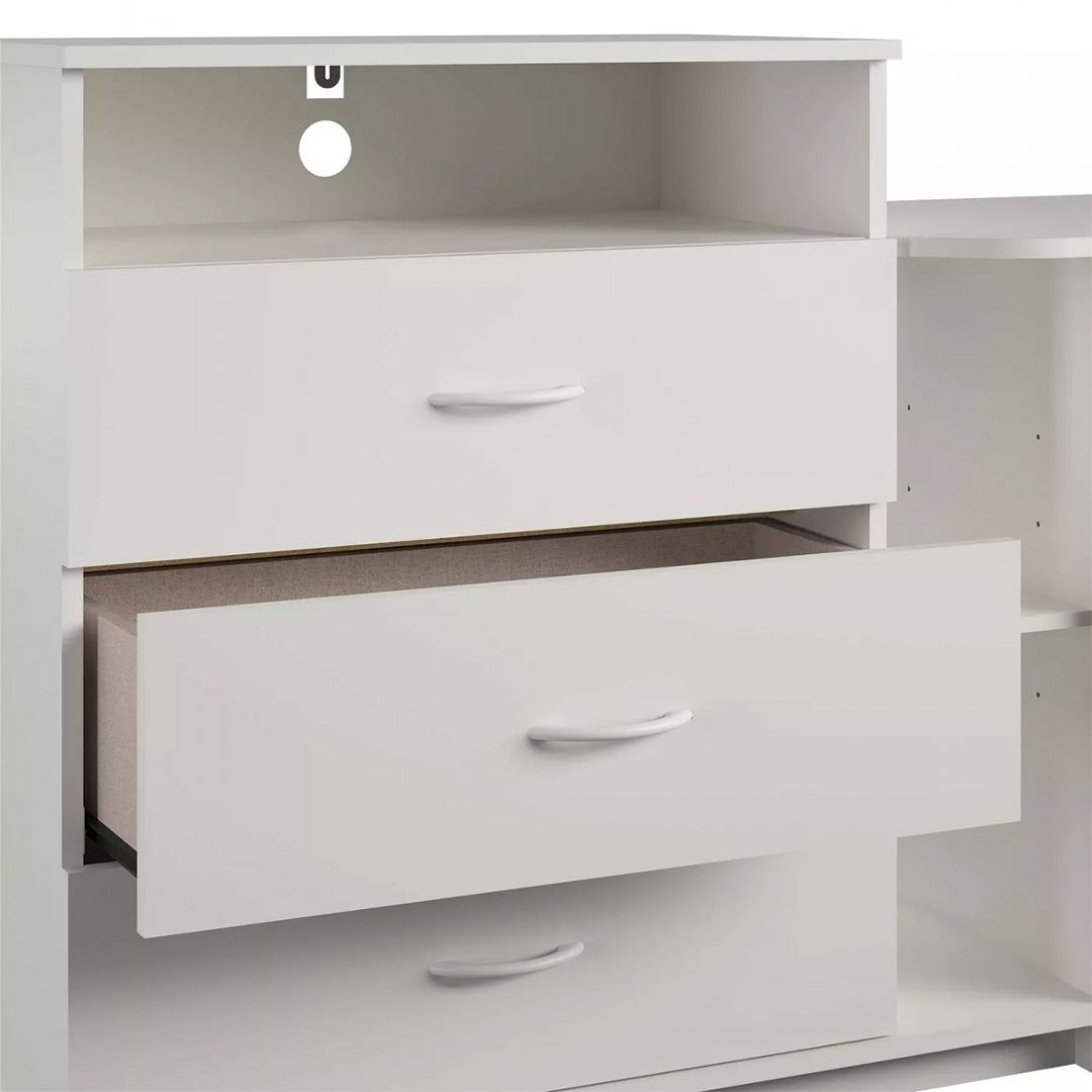 - Tên sản phẩm: Bàn làm việc chữ L thông minh kèm kệ sách thương hiệu IGA - Màu sắc: Trắng - Vân gỗ óc chó - Chất liệu: Gỗ mdf phủ melamin chống xước