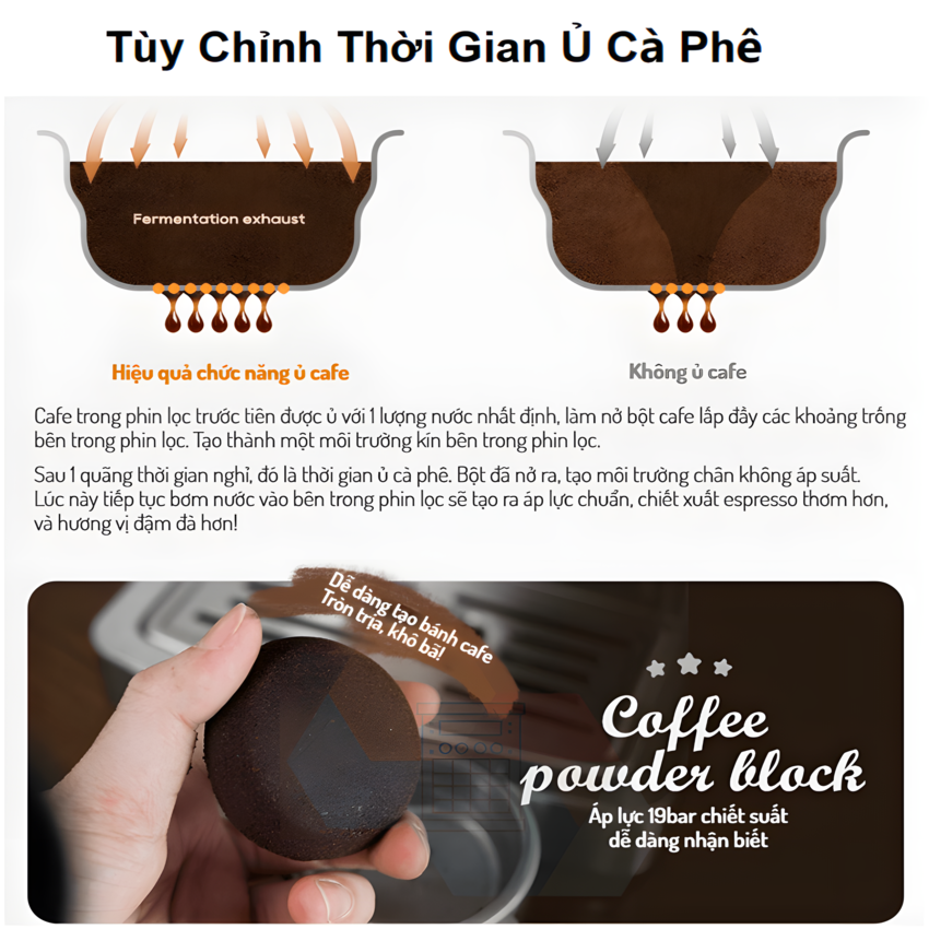 - Linh hoạt kiểm soát thời gian ủ cà phê 3~8 giây