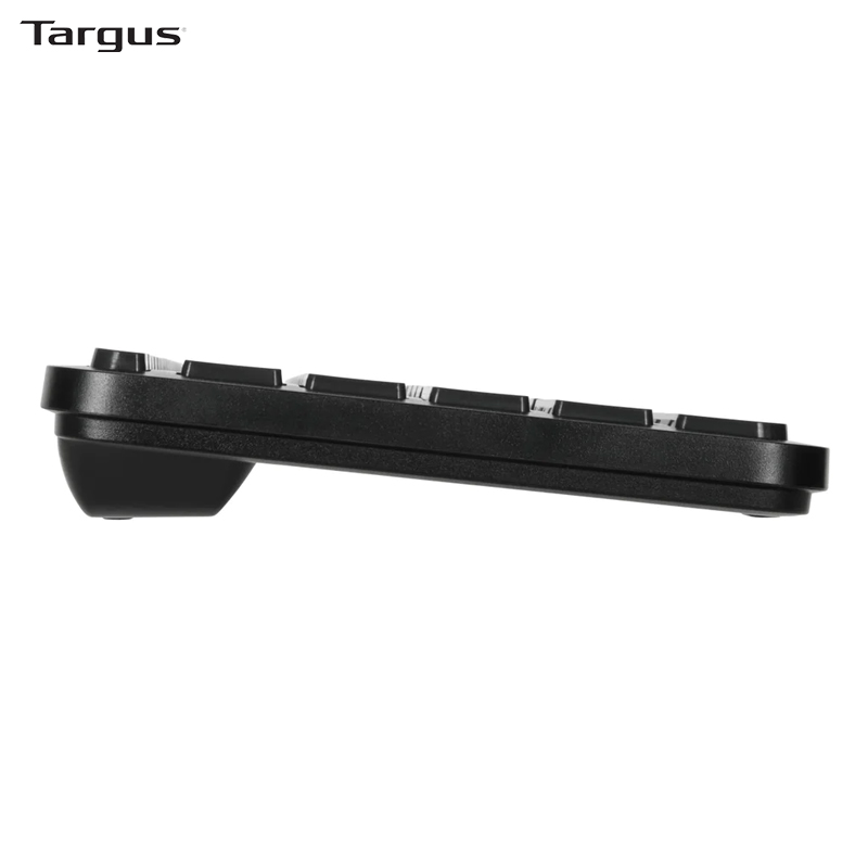 Bàn phím không dây Targus AKB869 Thiết kế mỏng với bàn phím midsize DefenseGuard Kháng khuẩn bảo vệ* tạo ra bề mặt sạch hơn và hoạt động liên tục để bảo vệ bàn phím bằng